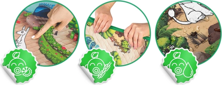 Díky kvalitní EVA pěně je podložka měkká, odolná a voděodolná, s lemovanými okraji pro delší životnost. Zajišťuje tepelnou izolaci od podlahy a nepohlcuje prach ani roztoče, takže je vhodná i pro alergiky. Snadno ji srolujete a uložíte, využijete ji doma v pokojíčku, na dlažbě, na terase i na pikniku.
