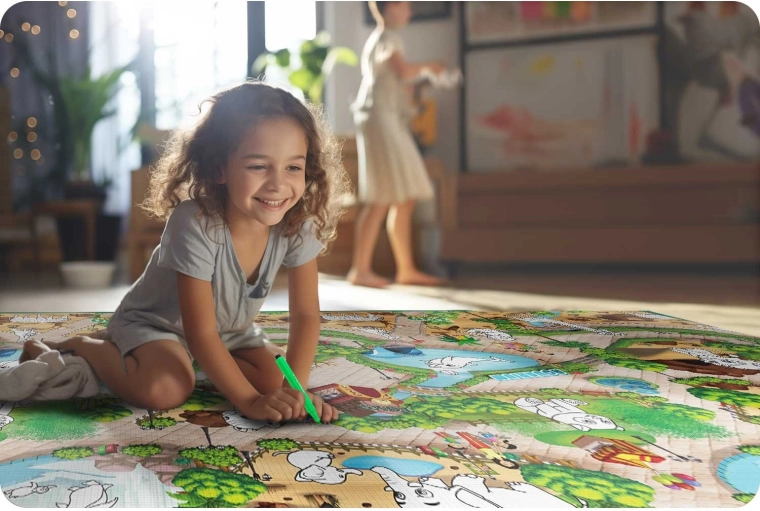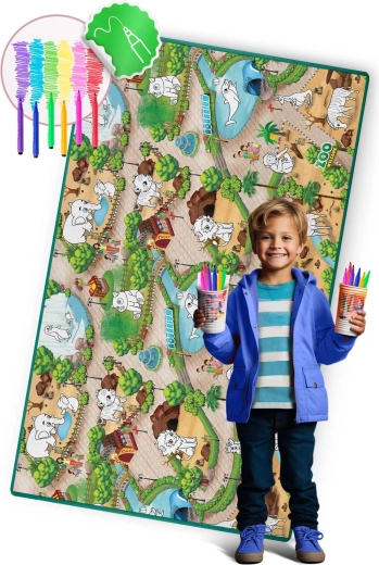 Vytvořte dětem kreativní a pohodlné místo na hraní doma i venku. Velkoformátová omalovánková podložka RICOKIDS s měkkým povrchem z EVA pěny tlumí nárazy, izoluje od chladu a je ideální pro kreslení, lezení, první krůčky i společné cvičení. Povrch je navržen tak, aby barvy z fixů rychle schnuly, takže bez nepořádku a bez skvrn si děti užijí hodiny tvoření.