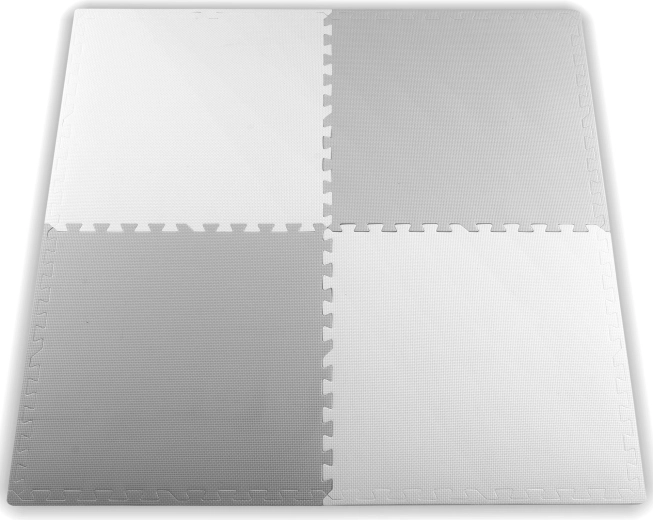 Praktická a stylová pěnová podložka z kvalitní EVA pěny pro bezpečné hraní a učení lezení. Sada obsahuje 4 velké díly 60 × 60 cm, které snadno spojíte do čtverce 120 × 120 cm. Podložka má protiskluzový povrch, výbornou tepelnou izolaci, je voděodolná a snadno se čistí. Díky světlé šedo-bílé kombinaci se hodí do každého interiéru a po složení zabere minimum místa.