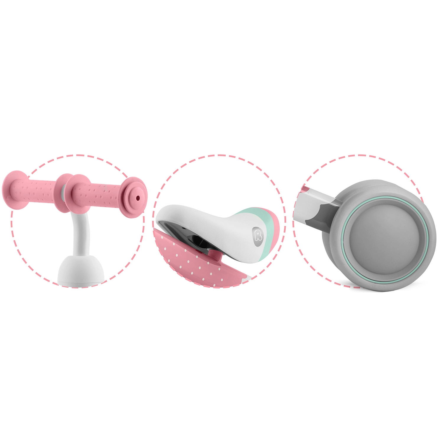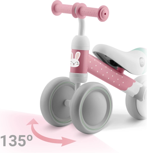 Lehké a stabilní odrážedlo pro nejmenší děti od 12 měsíců pomáhá rozvíjet rovnováhu, koordinaci a sebevědomí. Díky třem širokým kolům, nízkému sedlu a bezpečnému omezení úhlu řízení je jízda plynulá a bezpečná i v interiéru. Měkké pěnové sedlo a gumové rukojeti se stopery zajišťují pohodlí a jistý úchop.