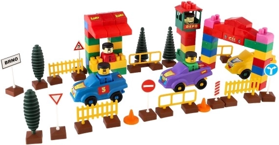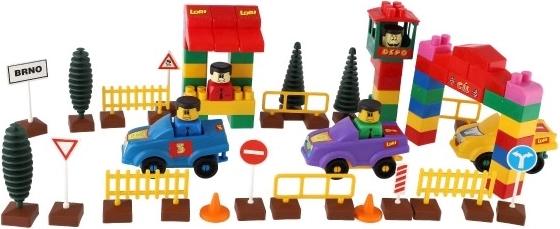 Stavebnice obsahuje realistické prvky, které stimulují dopravní prostředí pro hru, jako auta, stromy a dopravní značky.