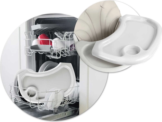 Tři úrovně nastavení vzdálenosti, vložka pro rychlé čištění a okraje proti rozlití pro čistější stolování.