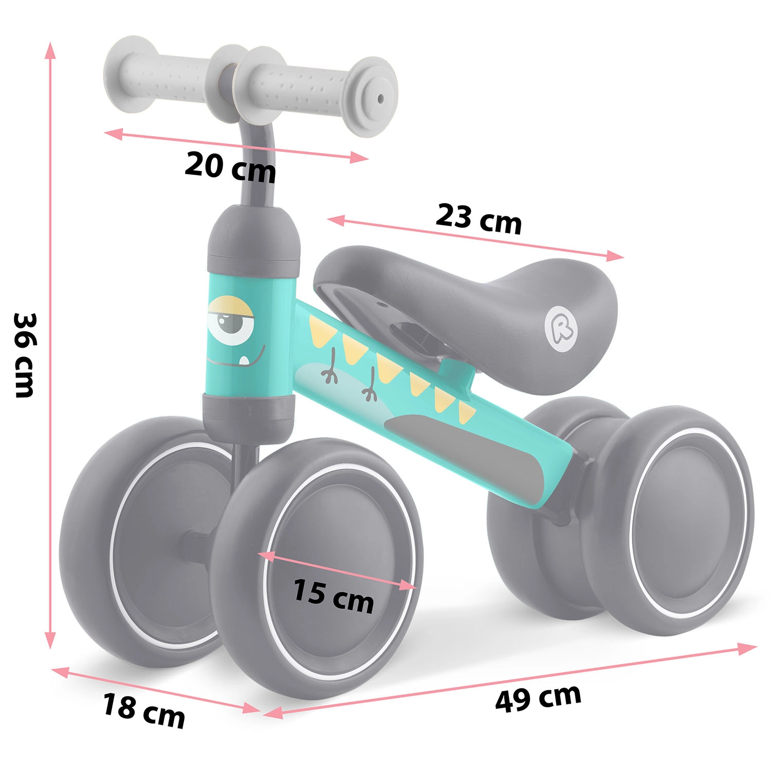 Čtyři/široká kola z odolného plastu poskytují výbornou přilnavost a stabilitu pro bezpečné učení rovnováhy už od prvních krůčků.