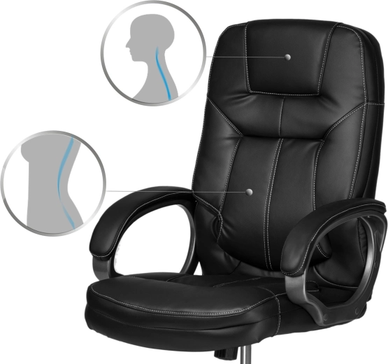 Užijte si celodenní pohodlí díky promyšlené ergonomii: vysoké opěradlo s podporou bederní části, dvojvrstvý profilovaný podhlavník pro uvolnění krční páteře a měkké loketní opěrky pro přirozenou oporu paží. Sedák s příjemným polstrováním zajišťuje komfort i při delším sezení.