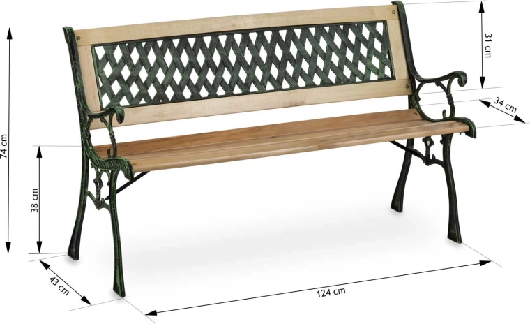 Díky kompaktním rozměrům 124 × 74 × 43 cm lavice snadno zapadne na balkon, terasu i do zahrady. Ergonomicky tvarované sedadlo (šířka 34 cm, výška 38 cm) poskytuje komfort při sezení a opěrky rukou usnadní vstávání. Povrchy stačí otřít vlhkým hadříkem – údržba je rychlá a jednoduchá.