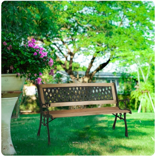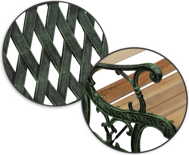 Ergonomické sedadlo a ażurowá mřížka v opěrce zvyšují komfort, podporují cirkulaci vzduchu a dodávají lavici elegantní vzhled.
