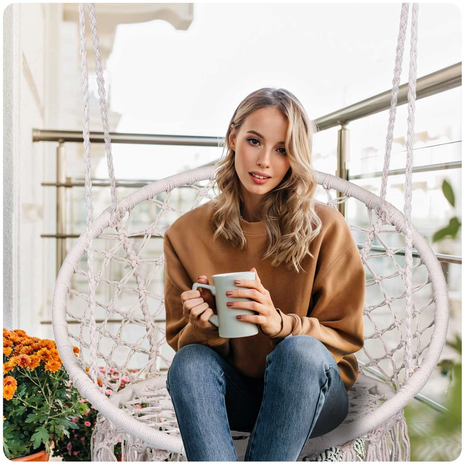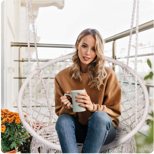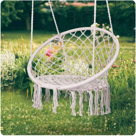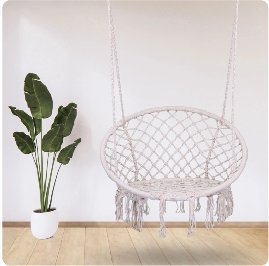 Závěsné křeslo v oblíbeném boho stylu je skvělé pro relaxaci na balkoně, terase i v obýváku. Díky vyprofilovanému tvaru se širokým sedákem a vyšším opěradlem nabízí pohodlí při čtení, odpočinku i jemném houpání. Odolné materiály a pevný pletený šňůrový výplet zaručují dlouhou životnost.
