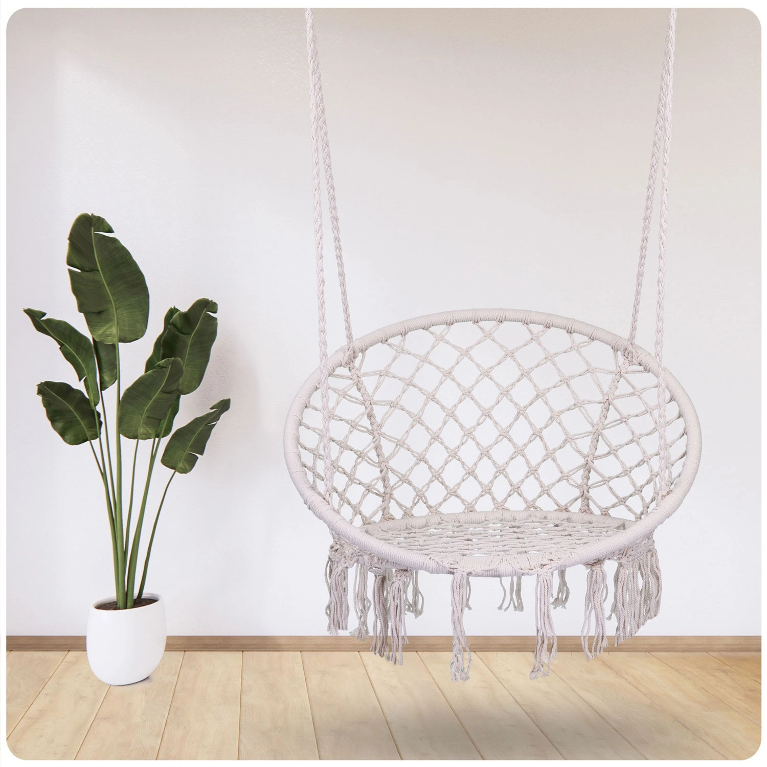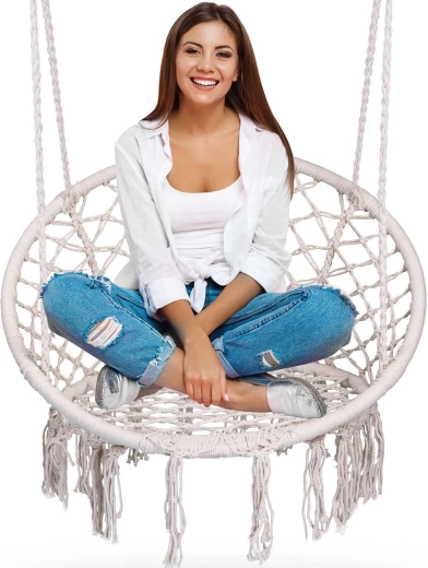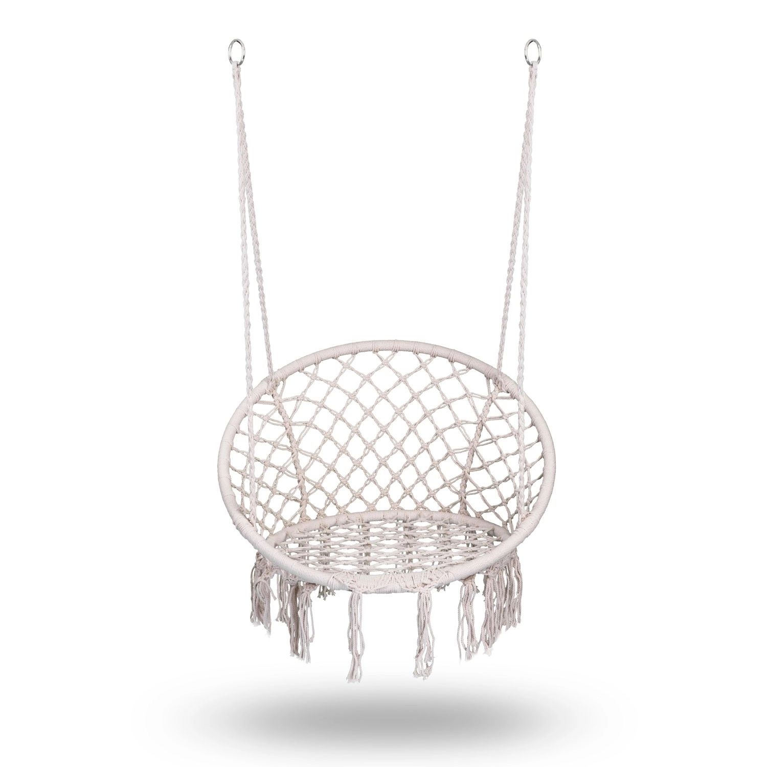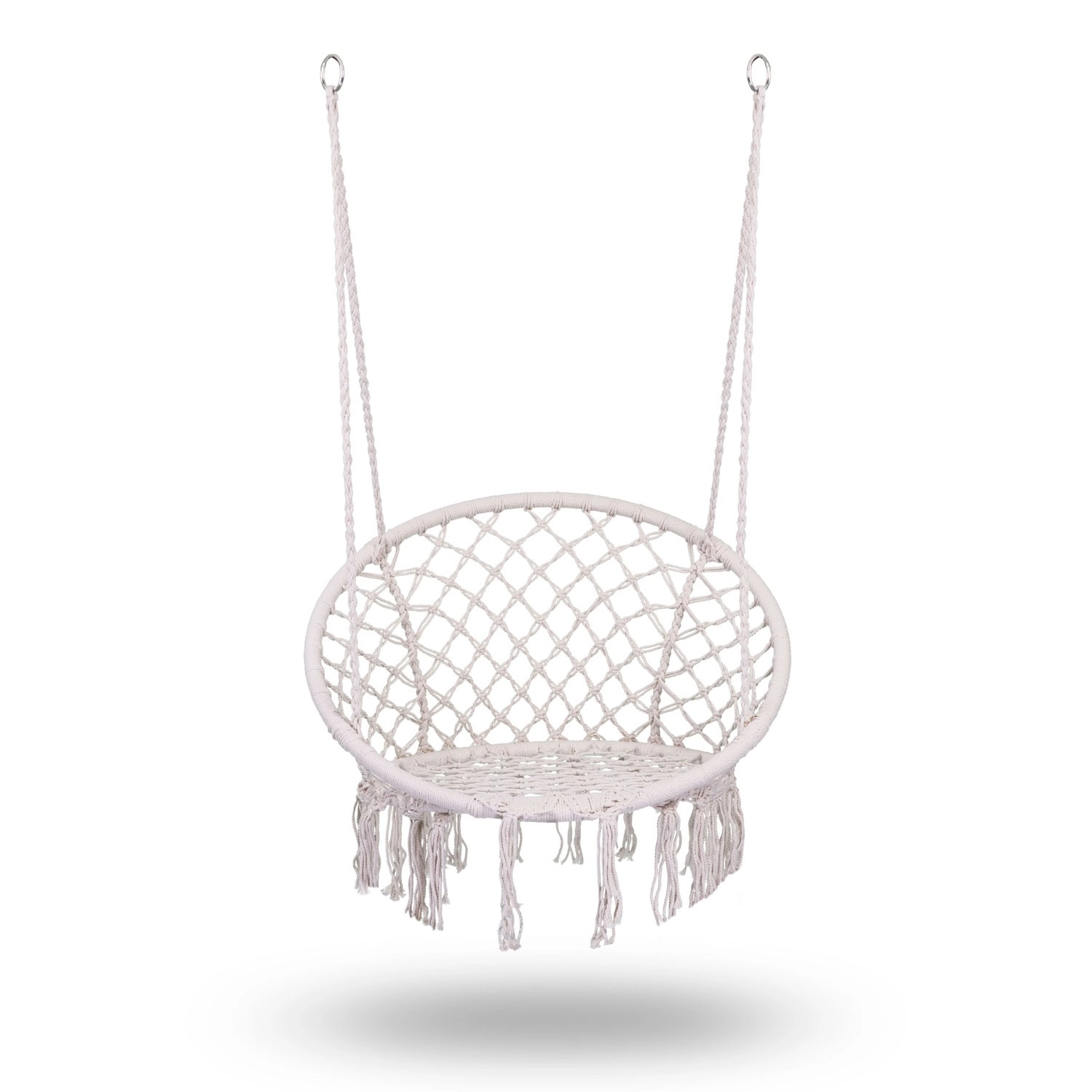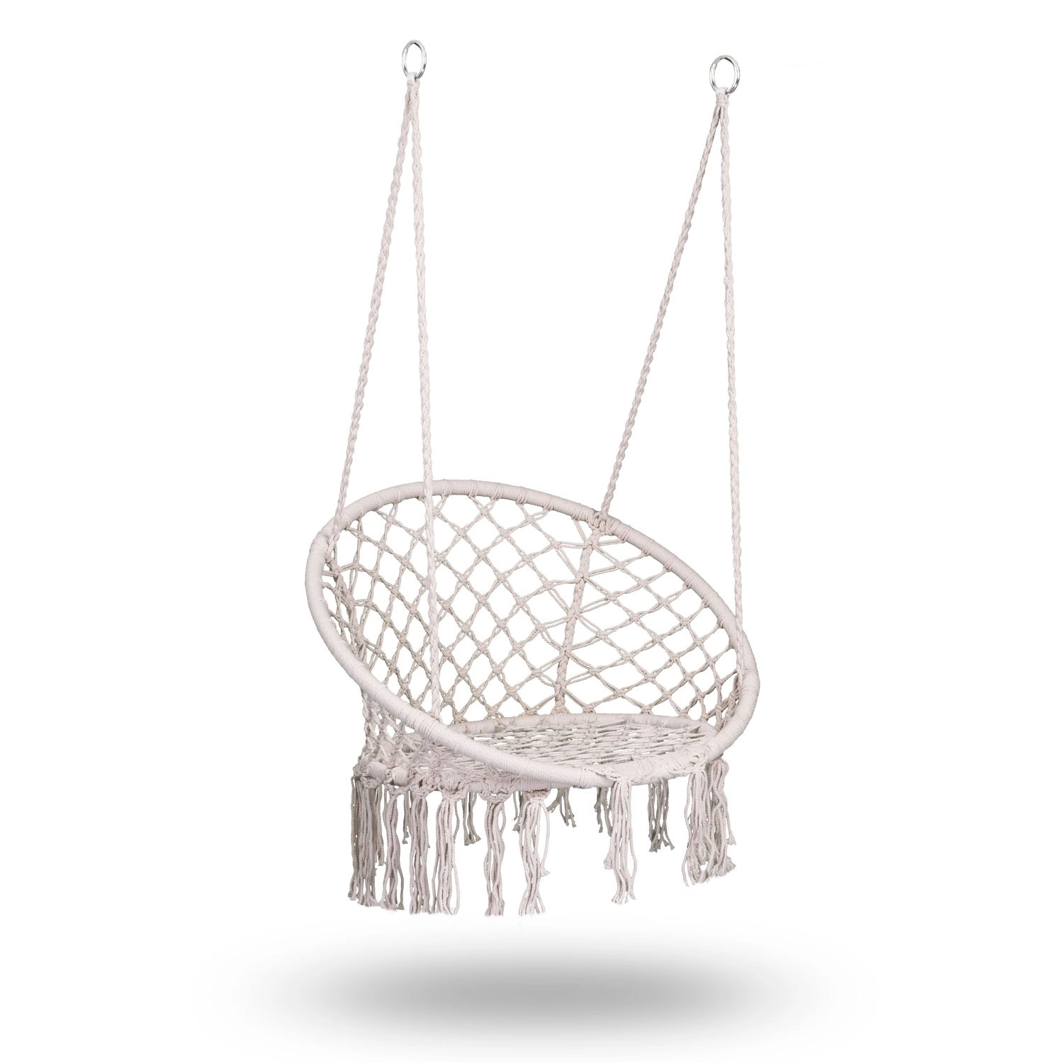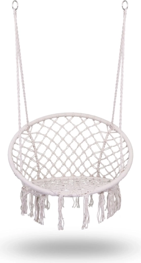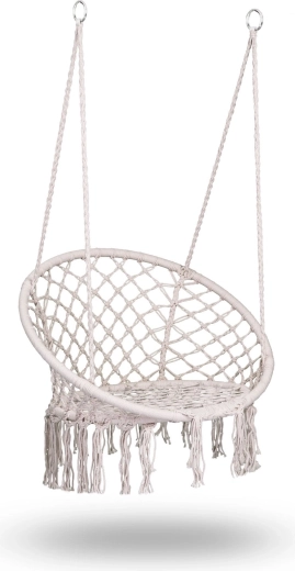 Užijte si relax a pohodlí v elegantním boho závěsném křesle v béžové barvě. Pevná kovová konstrukce, dvojitě pletené závěsné lana a nosnost až 150 kg zajišťují bezpečné houpání doma i venku. Široké sedátko, vysoké opěradlo a stylové macramé třásně dodají vašemu interiéru i terase výjimečnou atmosféru.