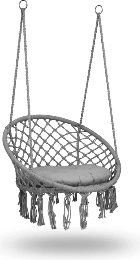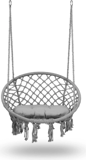 Užijte si relax v závěsném křesle v boho stylu se širokým sedákem, vysokým opěradlem a měkkým polštářem v ceně. Odolná kovová konstrukce, pevný makramé výplet a dvojitá závěsná lana zajistí bezpečné houpání doma i venku. Nosnost až 150 kg a možnost montáže na jeden nebo dva úchyty dělají z tohoto křesla ideální volbu na balkon, terasu i do obýváku.