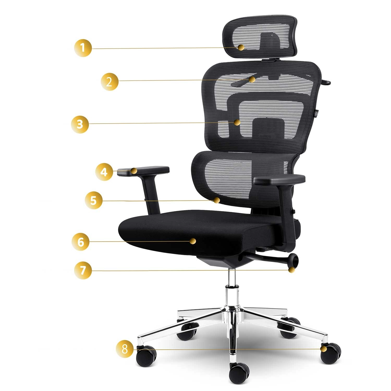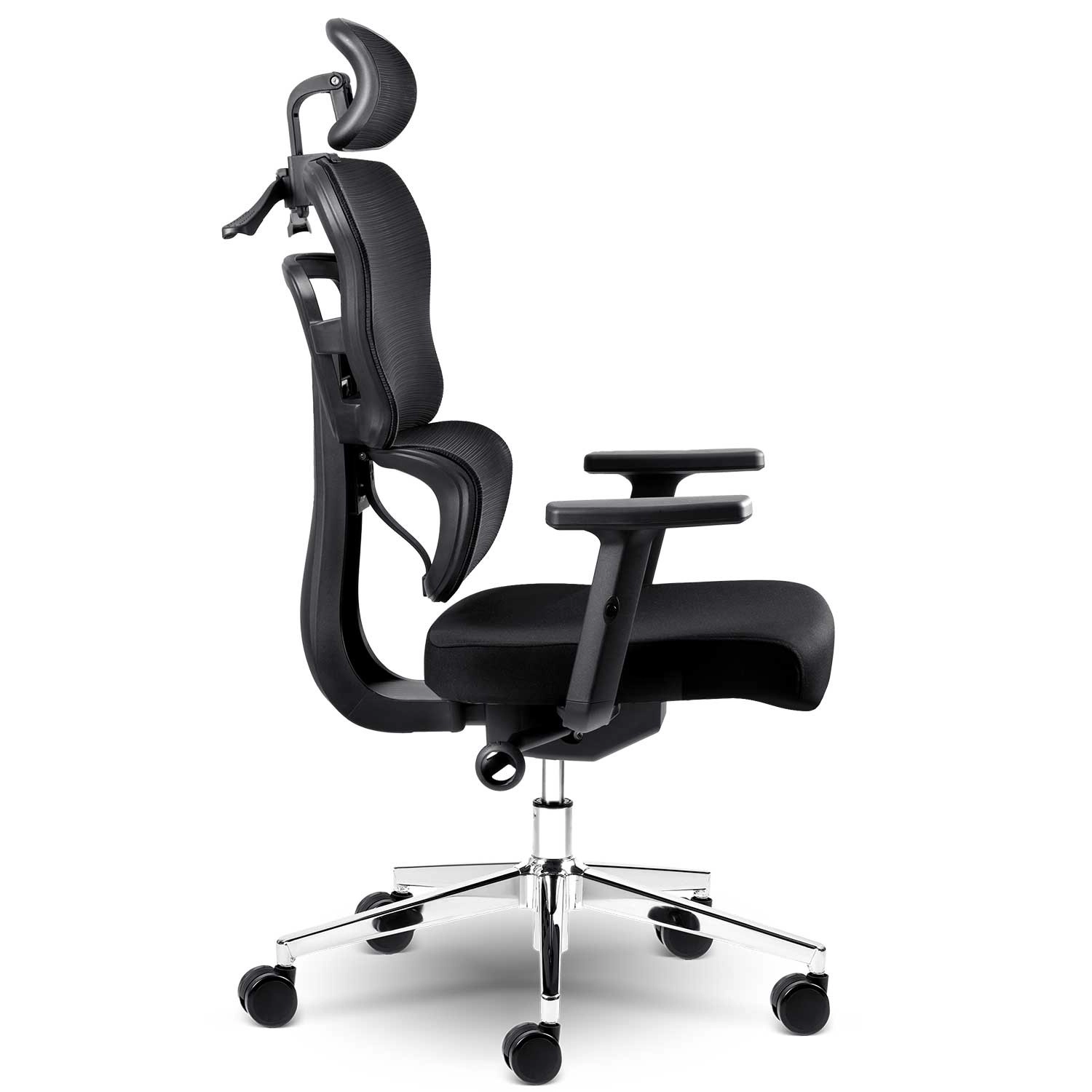 - Chromovaná základna, dvojitá kolečka a nastavitelný podhlavník pro maximální přizpůsobení
