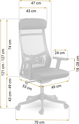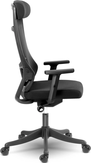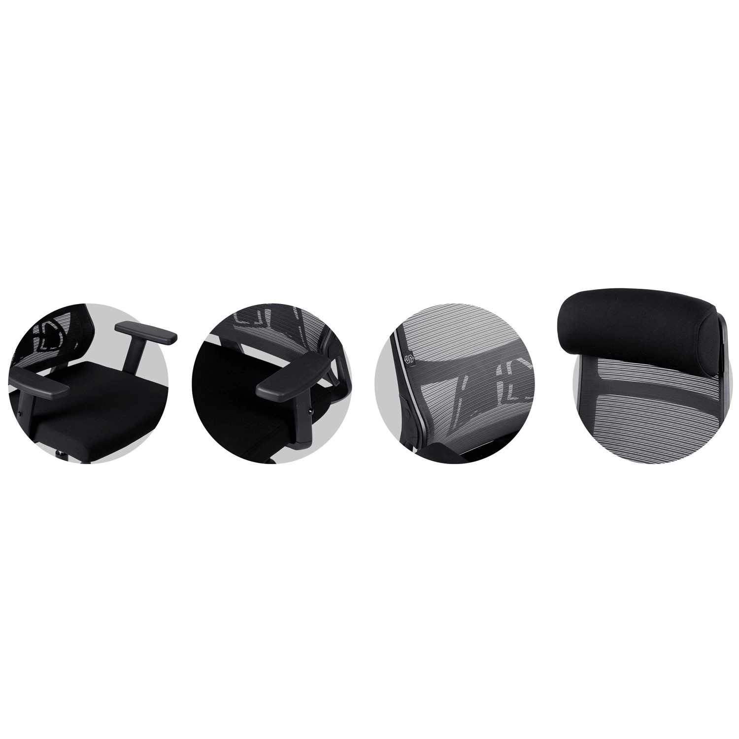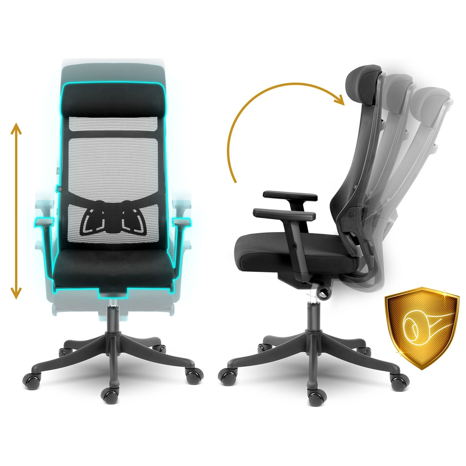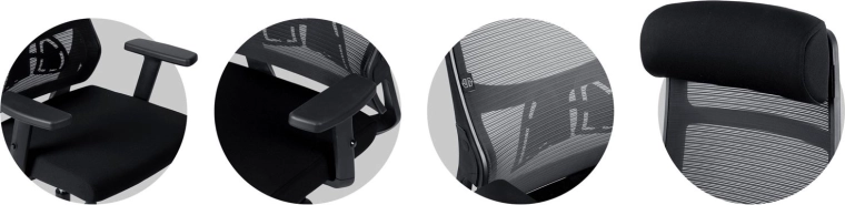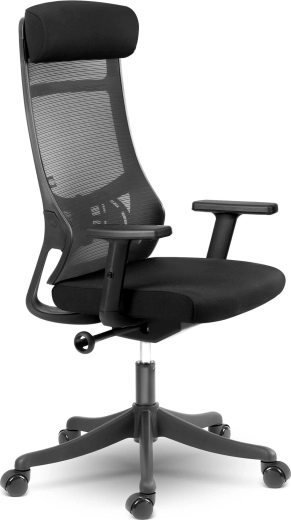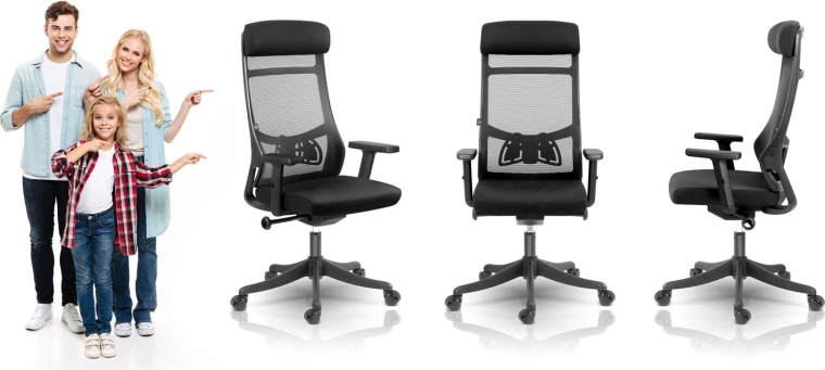 Vysoké opěradlo s bederní podporou a mikrosíťovinou zajišťuje zdravé držení těla a stálou cirkulaci vzduchu i při celodenním sezení.