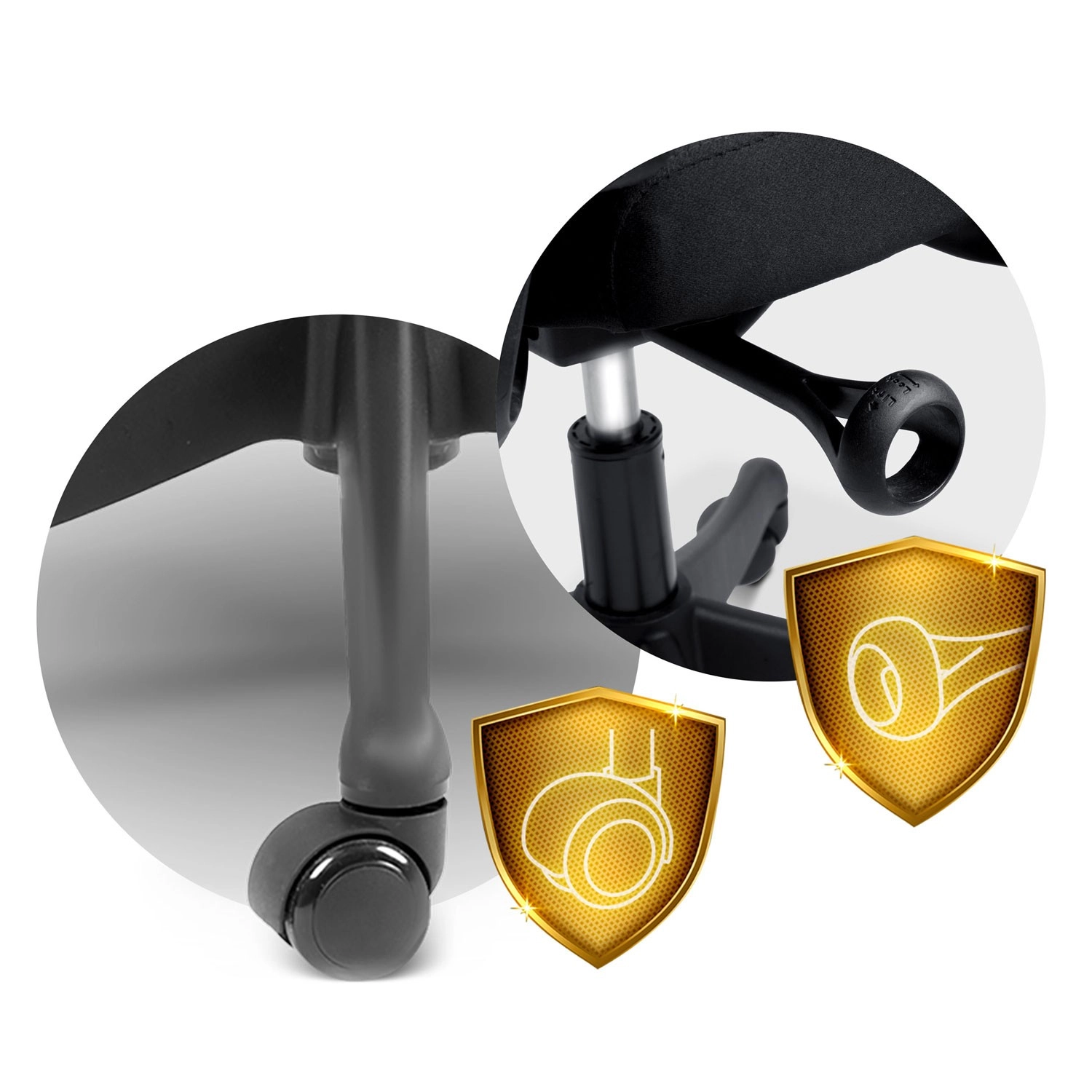 Pětiramenná základna s nylonovo-kaučukovými kolečky se pohybuje tiše a nepoškrábe podlahu, zatímco konstrukce zajistí stabilitu do 120 kg.