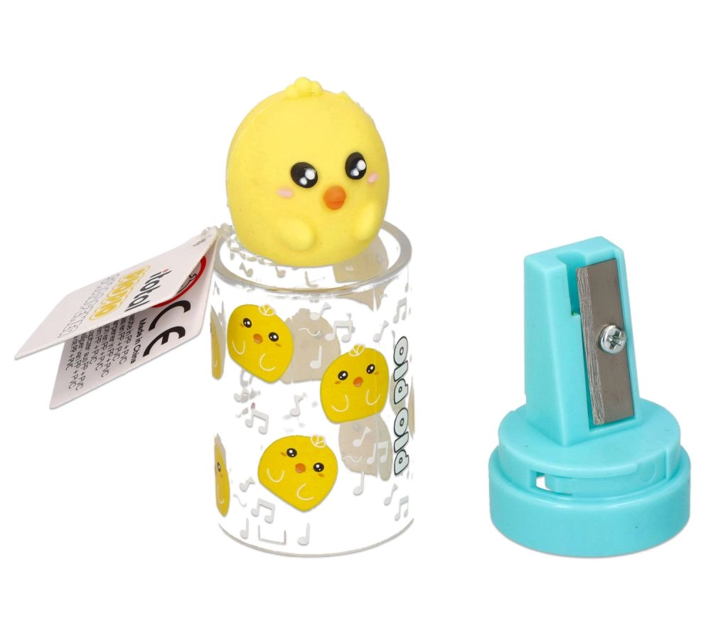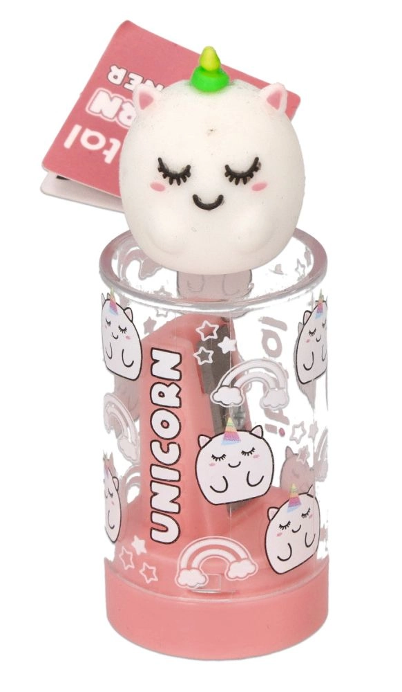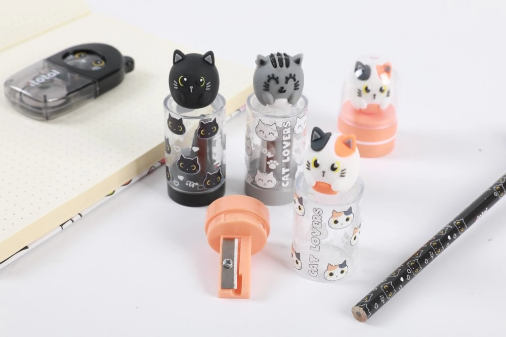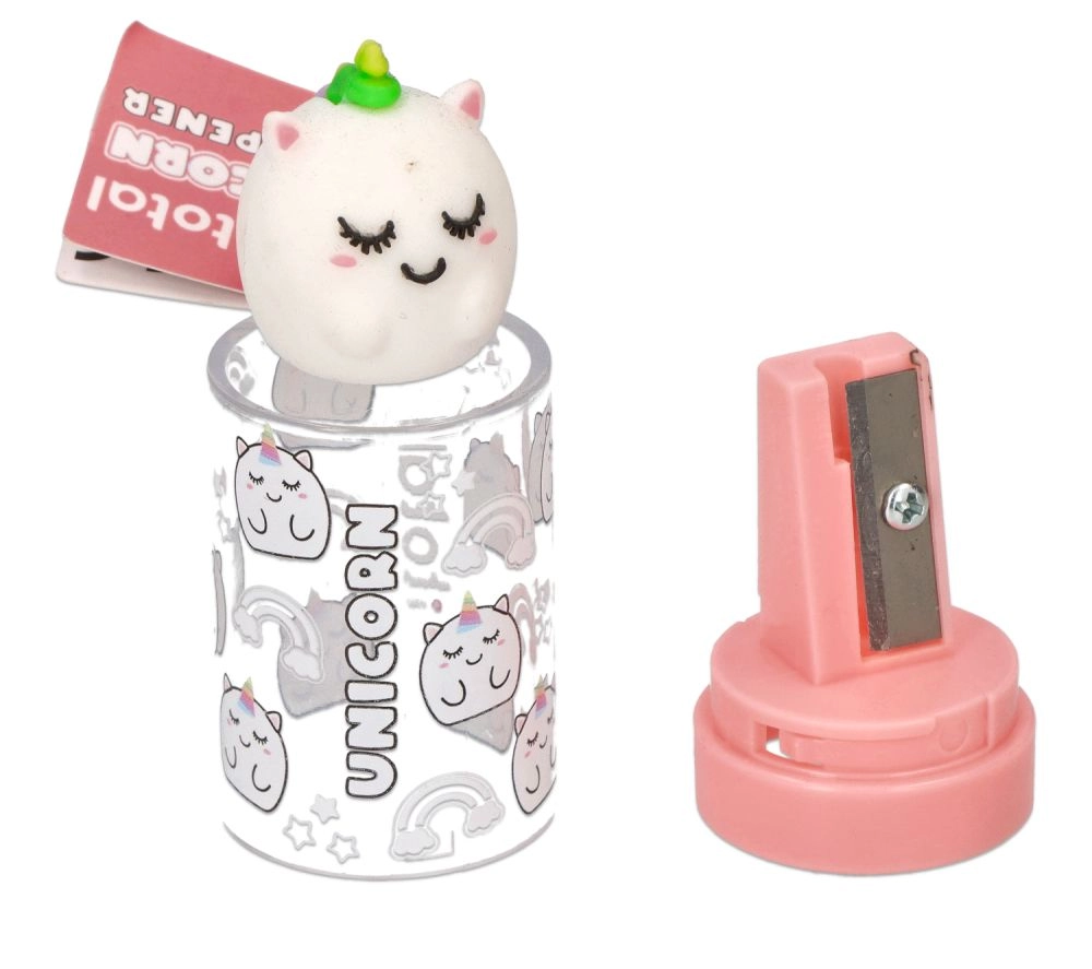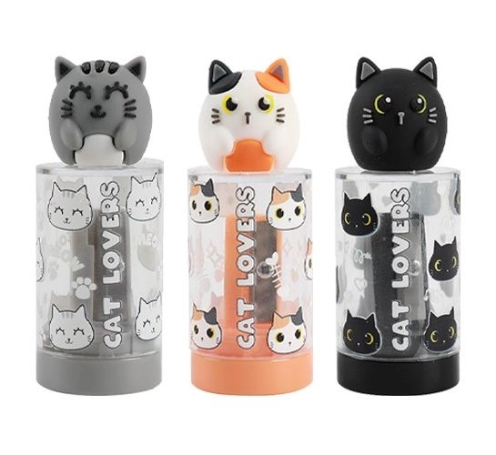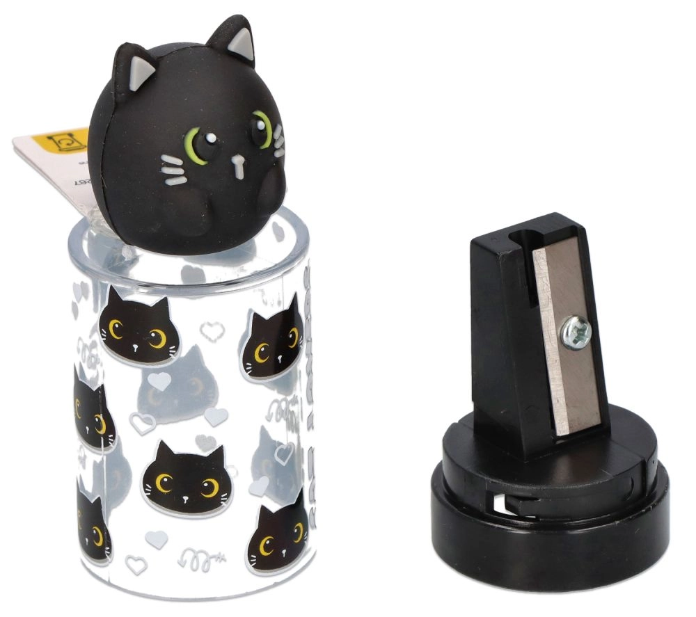 Lehká a odolná konstrukce se snadno vejde do každého penálu. Kovový břit zajišťuje plynulé, přesné ořezávání bez lámání tuhy, zatímco víčko s figurkou slouží jako praktická krytka.