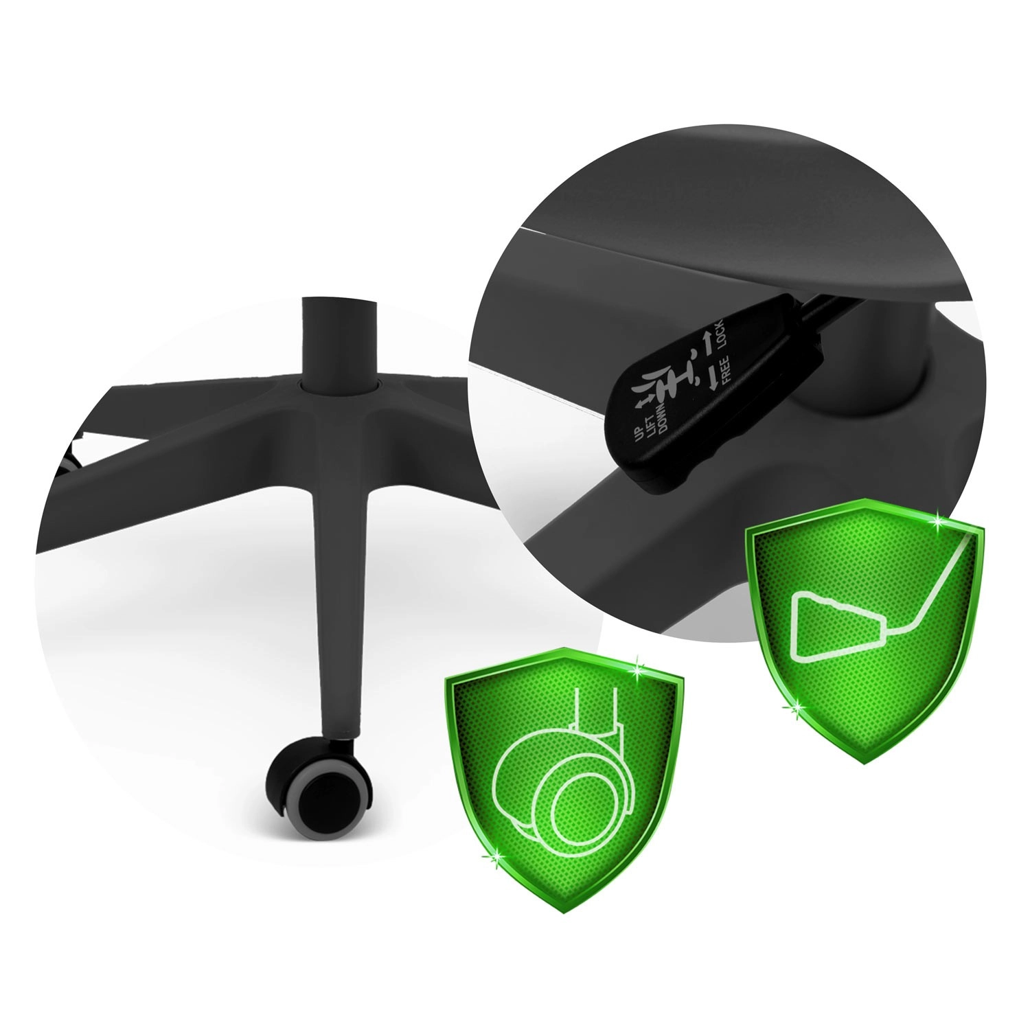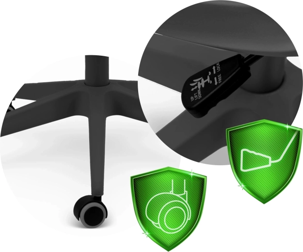 Díky plynulému nastavení výšky pomocí SoftUp si židli snadno přizpůsobíte svému pracovnímu stolu. Mechanismus SoftSwing umožňuje relaxační houpání a lze jej jednoduše uzamknout pro soustředěnou práci. Dvojitá nylonovo–kaučuková kolečka se pohybují tiše a nepoškrábou podlahu, zatímco stabilní pětiramenná základna poskytuje jistotu při každém pohybu.