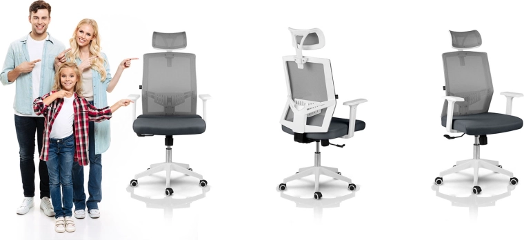 Snadno si přizpůsobíte výšku sedu, úhel opěradla i polohu hlavové opěrky – ať už pracujete, studujete nebo relaxujete v houpacím režimu. Pogumovaná kolečka jsou šetrná k podlaze a umožní plynulý pohyb po kanceláři či domácí pracovně.