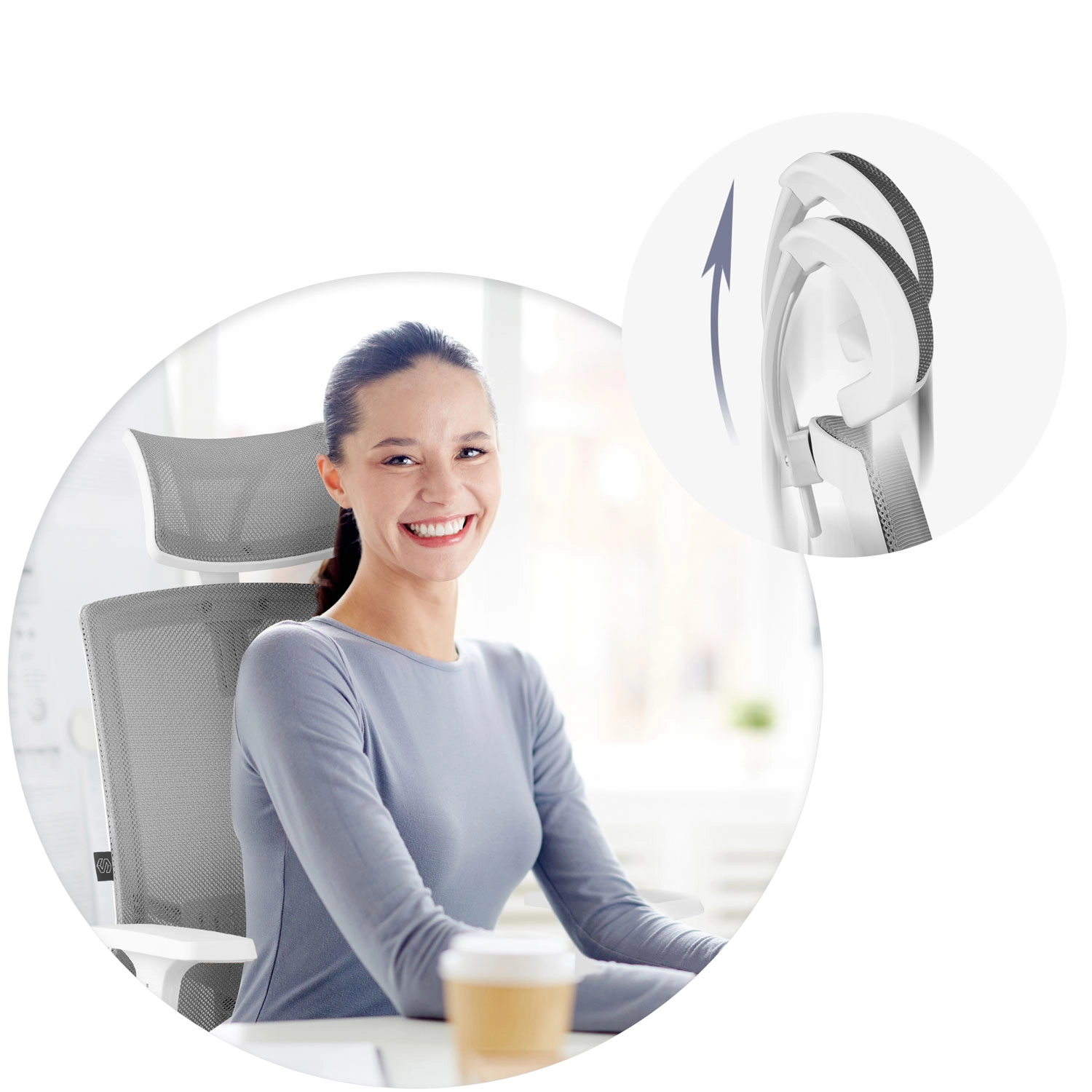 Snadno upravíte polohu a výšku opěrky hlavy, abyste ulevili krční páteři a zvýšili komfort při práci i odpočinku.
