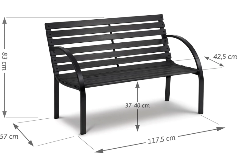 Díky šířce 117,5 cm a komfortnímu sedáku je ideální pro dvě osoby. Černé provedení snadno sladíte s ostatním zahradním nábytkem a minimalistické linie podtrhnou moderní charakter prostoru.