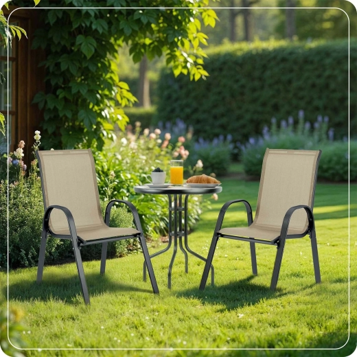 Moderní židle SOFOTEL v elegantní kombinaci grafitového rámu a béžového textilenu skvěle zapadnou do jakéhokoli venkovního prostoru. Lehké, ale pevné provedení umožňuje snadnou manipulaci a stohování, takže ušetříte místo, když je zrovna nepoužíváte. Prodyšná síťovina zajišťuje cirkulaci vzduchu a pohodlí i v horkých dnech.
