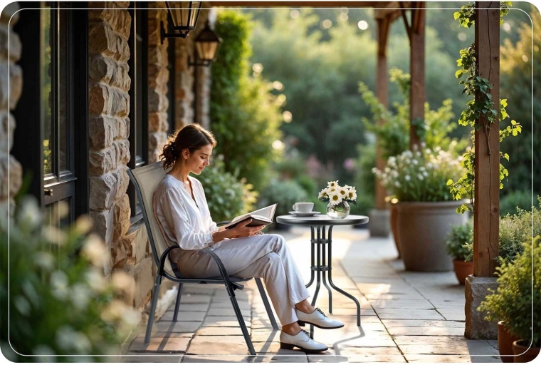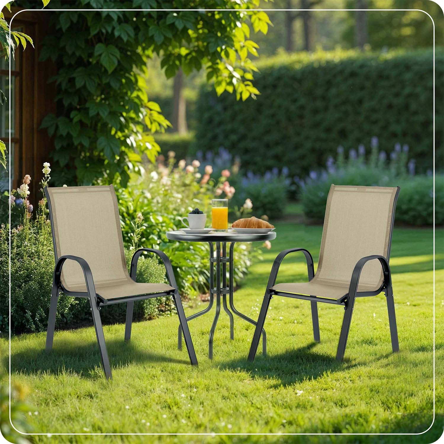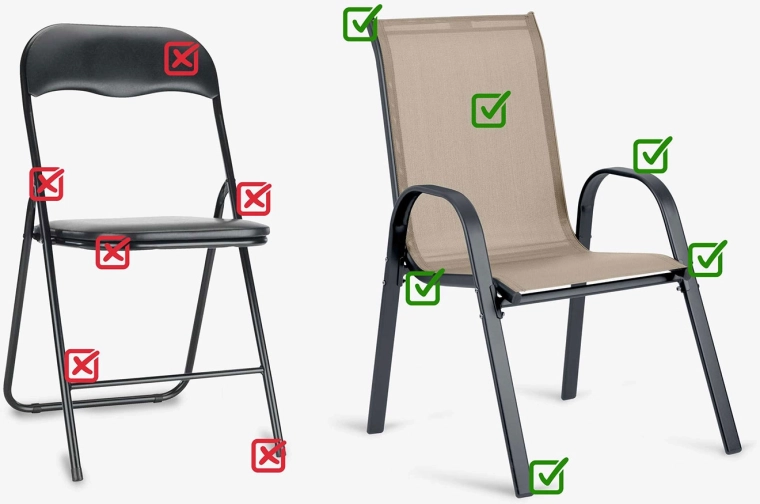 Židle lze snadno stohovat a skladovat, takže uvolníte prostor na terase či balkonu během chladných měsíců nebo při úklidu.