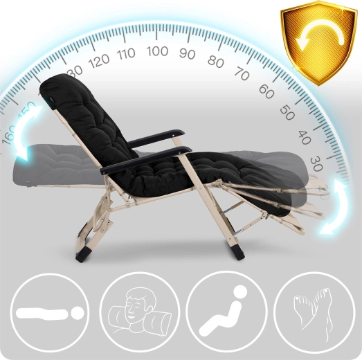 Snadno si zvolíte ideální úhel opěradla a podnožky. Plně ležící poloha zvedá nohy do úrovně srdce, zlepšuje cirkulaci a snižuje zátěž páteře.