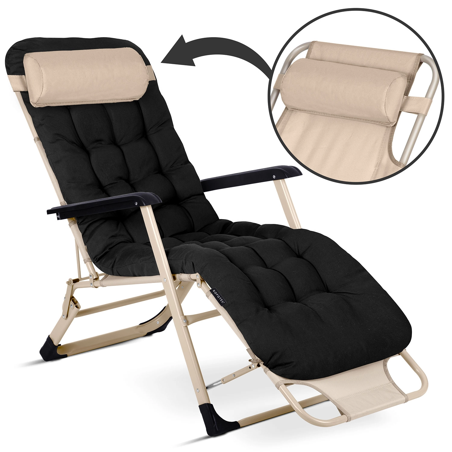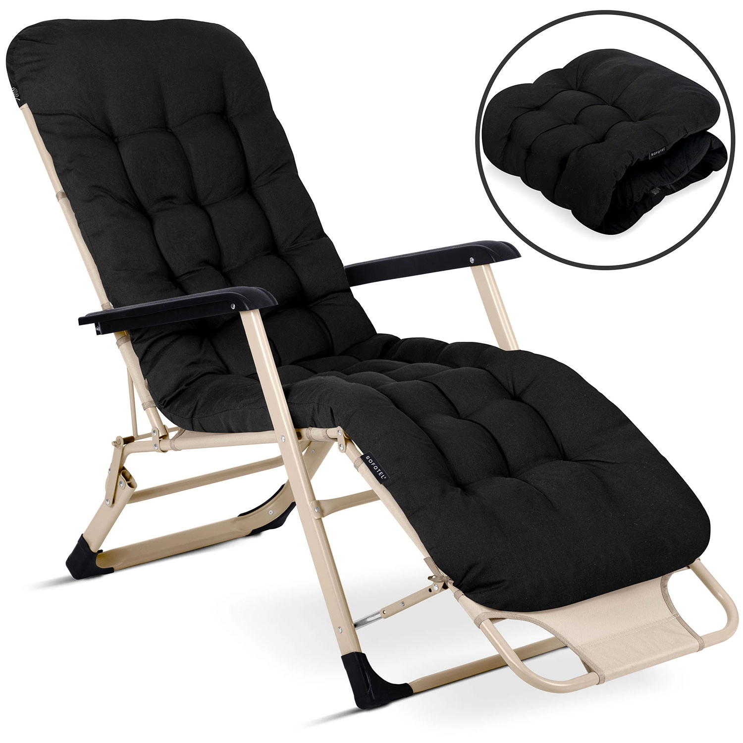 Lehátko Sofotel ChillWell je navrženo pro prvotřídní pohodlí doma na terase, u bazénu i na dovolené. Silně vyplněný, prošívaný polštář je potažen kvalitní tkaninou příjemnou na dotek a poskytuje měkkou, ale zároveň pružnou oporu celému tělu. Díky úplnému rozložení do ležící polohy si zvednete nohy do úrovně srdce, což podporuje lepší krevní oběh a ulevuje zádům.