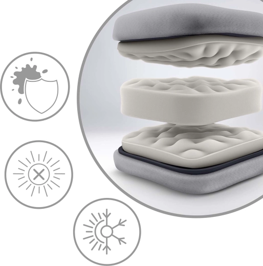 Měkký a pružný polštář s odnímatelným podhlavníkem poskytuje příjemnou oporu hlavy a šíje, je odolný proti mačkání a šetrný ke kůži.