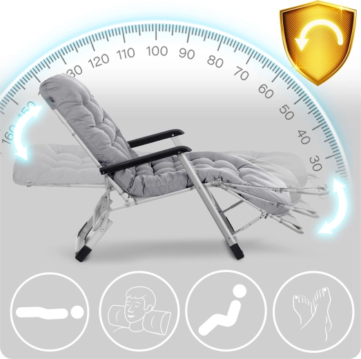 Nastavitelné opěradlo a 3stupňová podnožka umožní najít ideální pozici – od sezení po úplné ležení pro maximální relax.