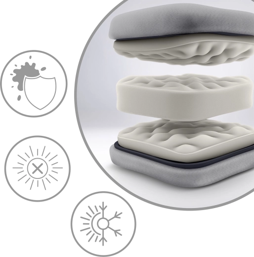 - Maximální pohodlí: měkký, pružný polstr s podhlavníkem pro oporu krku.