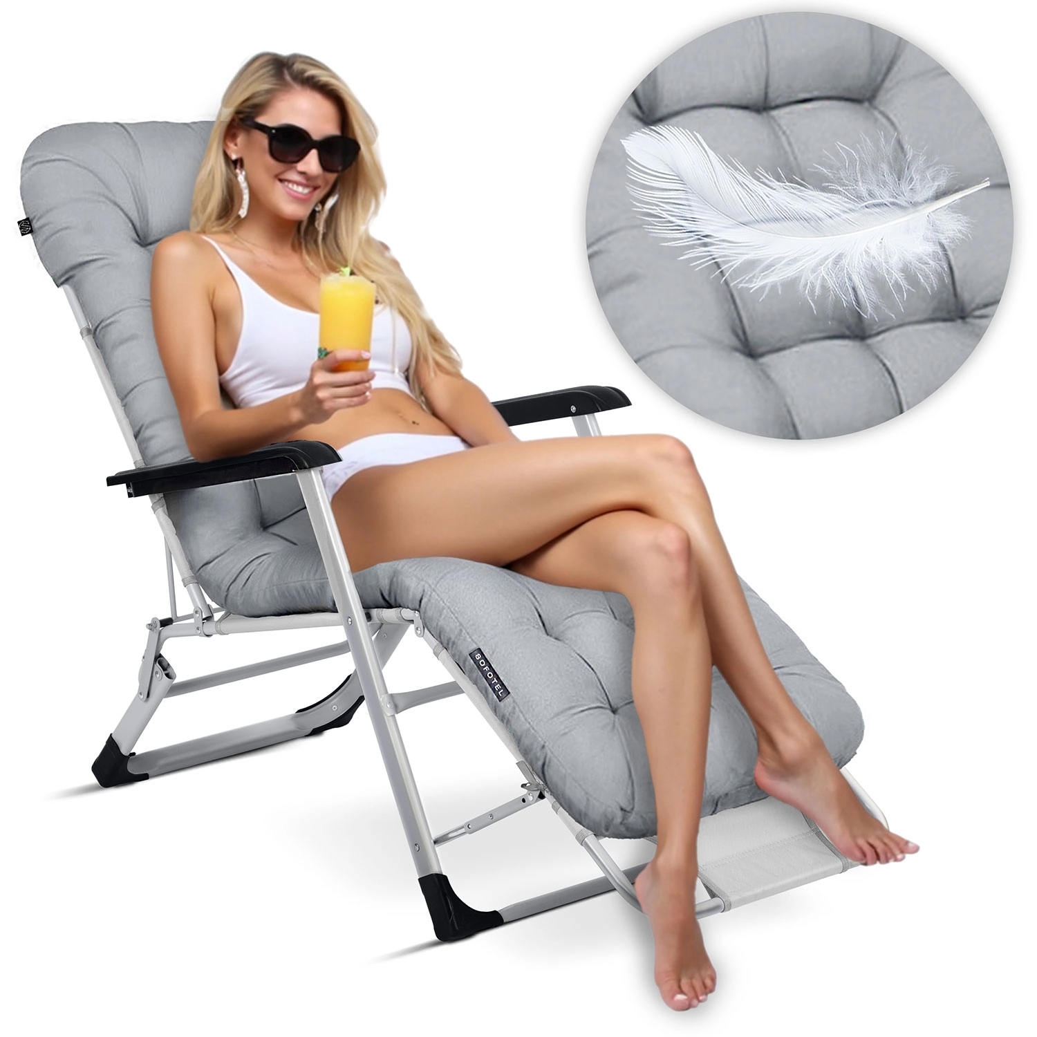 Lehátka Sofotel ChillWell jsou navržena pro celodenní venkovní odpočinek. Silně polstrovaný, prošívaný sedák je příjemný na dotek a odolný proti slehávání, takže si dlouhodobě udrží svůj tvar. Nastavení opěradla a 3stupňové polohování podnožky vám umožní najít ideální pozici – od pohodlného sezení až po úplné ležení s nohama v úrovni srdce pro lepší prokrvení a odlehčení páteře.