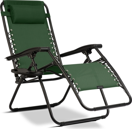 Praktický postranní mini stolek s držákem nápoje a přihrádkou na telefon udrží vše důležité po ruce. Polštář pod hlavu zvyšuje pohodlí při dlouhém ležení, zatímco pevný ocelový rám s práškovým lakem zajišťuje stabilitu a dlouhou životnost. Lehátko se rychle skládá a rozkládá, je lehké a kompaktní pro snadné převážení v autě.