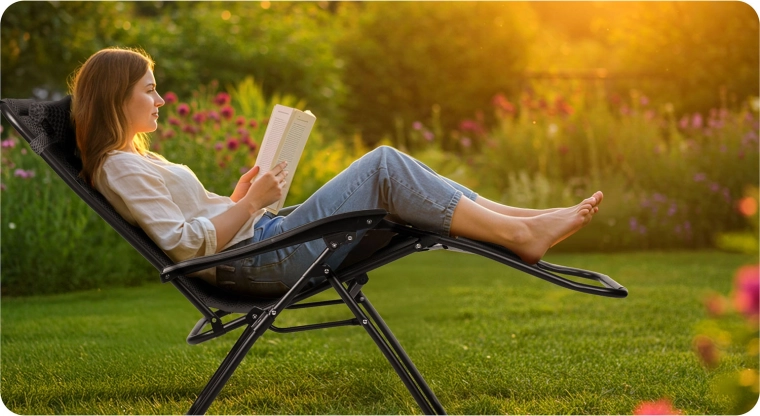 Plynulé nastavení sklonu s aretací umožní pozici, kdy jsou nohy v úrovni srdce. Tím se zlepší krevní oběh, uleví páteři a tělo se dokonale uvolní.