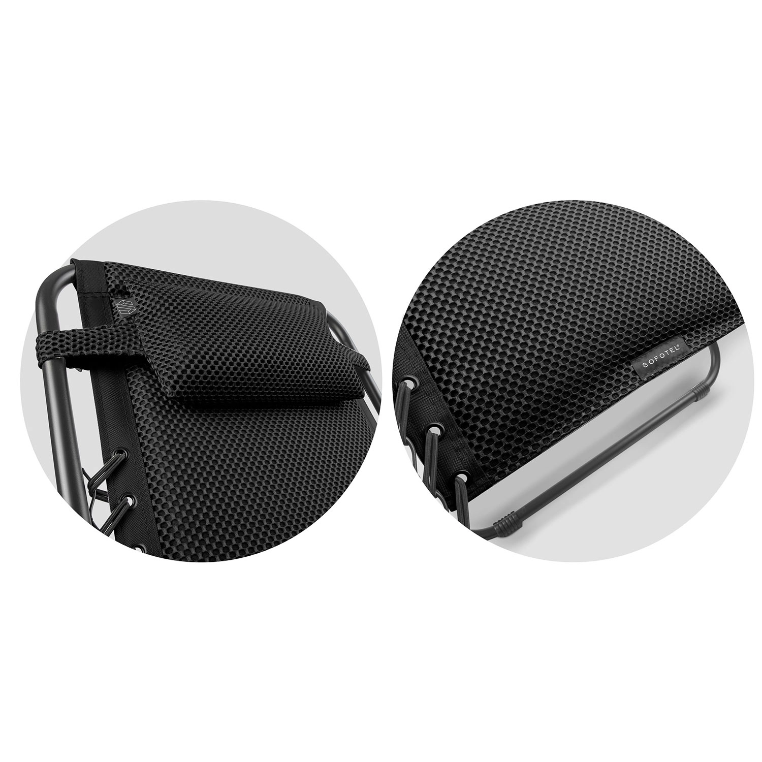 Užijte si dokonalý odpočinek se skládacím gravitačním lehátkem Sofotel ChillWell Soft v elegantní černé barvě. Ergonomická konstrukce umožňuje plynulé nastavení sklonu opěradla až do téměř beztížného stavu pro maximální uvolnění. Měkký polštář podpírá hlavu a šíji, zatímco inovativní 3D FoamGrid™ zajistí výjimečnou měkkost, prodyšnost a rychlé schnutí. Pevný ocelový rám s práškovým lakem garantuje stabilitu a dlouhou životnost doma na terase, balkoně i na cestách.