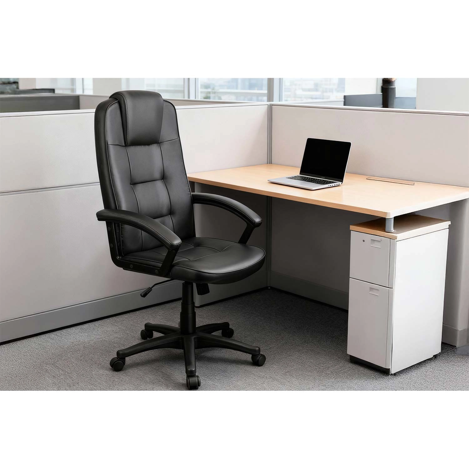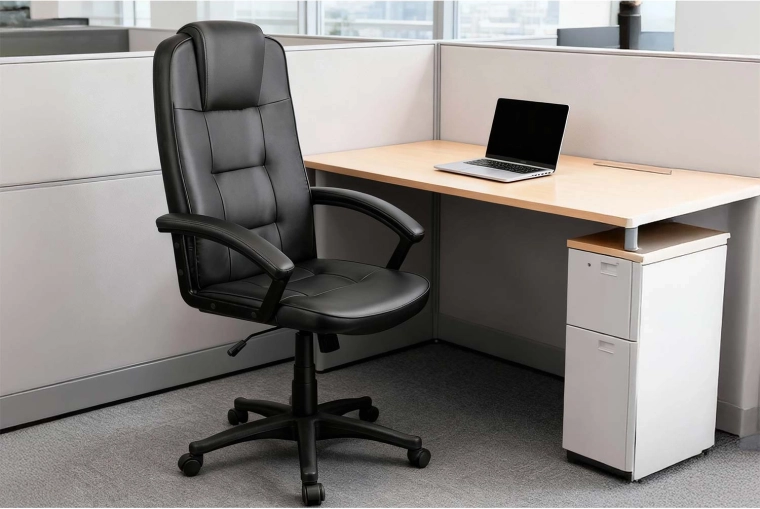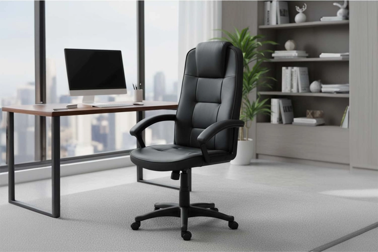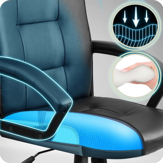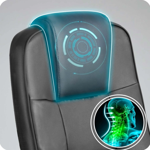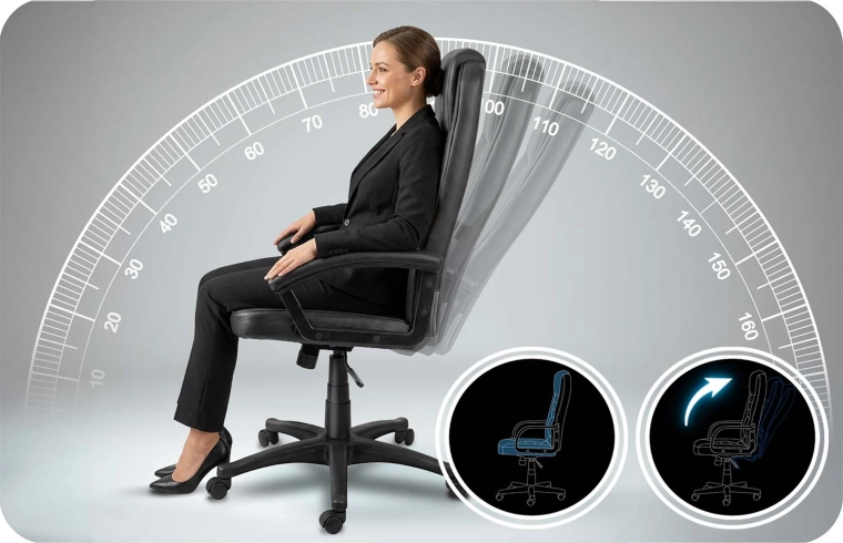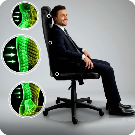 Vysoké opěradlo s bederním profilem a měkkým polstrováním pomáhá udržet správné držení těla, snižuje napětí svalů a zvyšuje soustředění při práci.