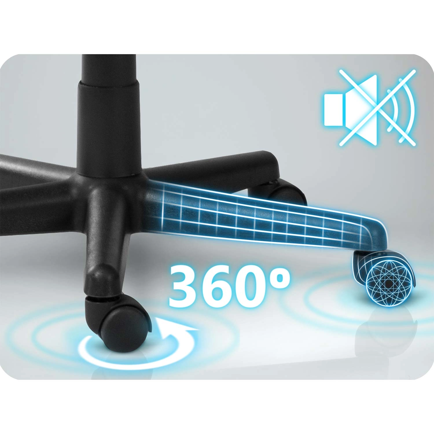 Pětiramenná otočná základna s povrchově upravenými kolečky zajišťuje hladký a tichý pohyb bez poškození podlahy a výbornou stabilitu.