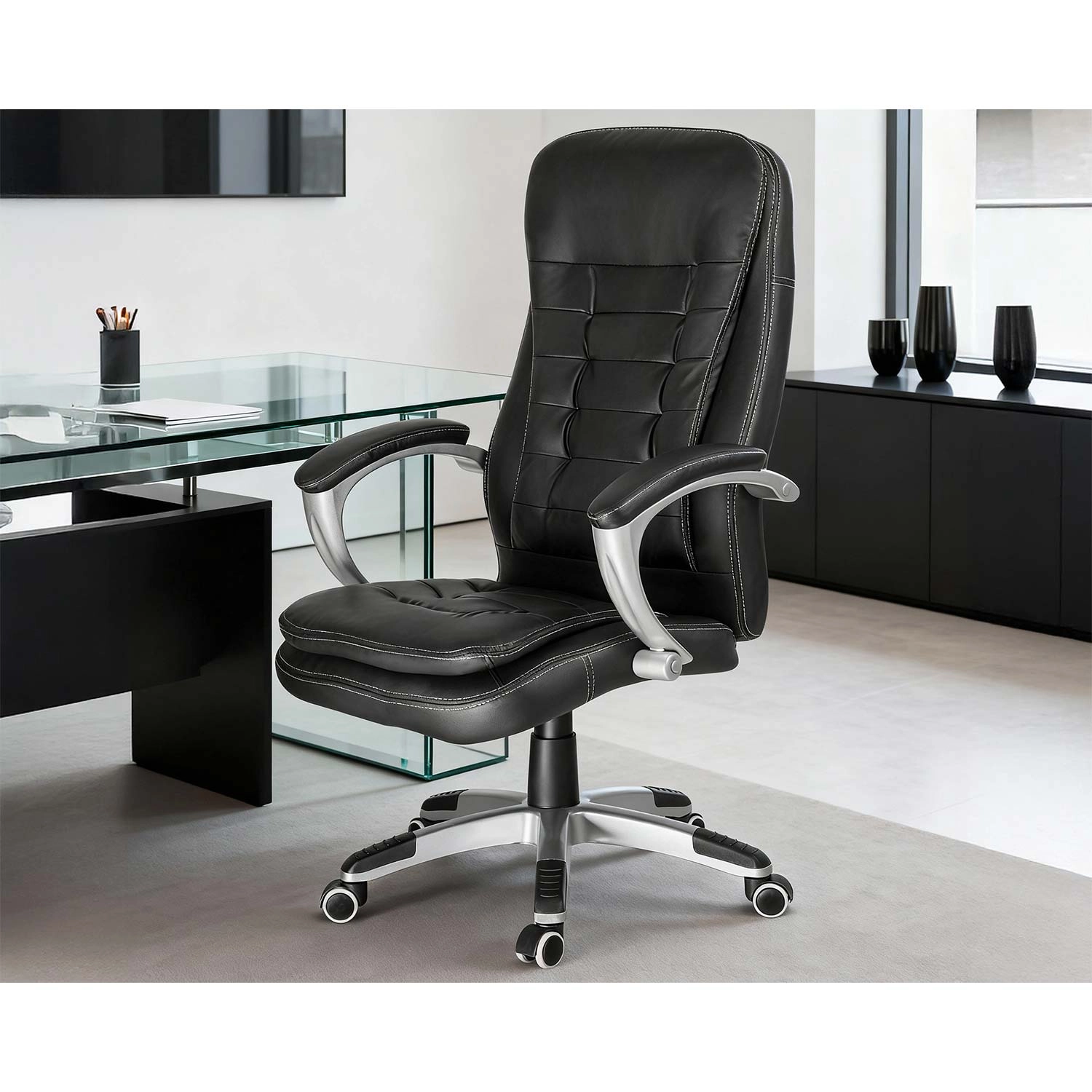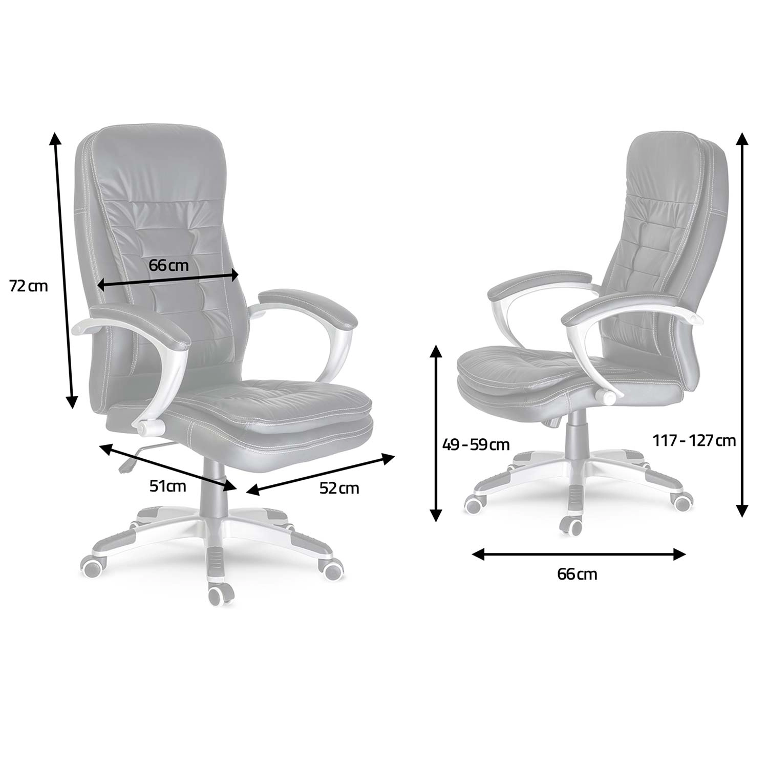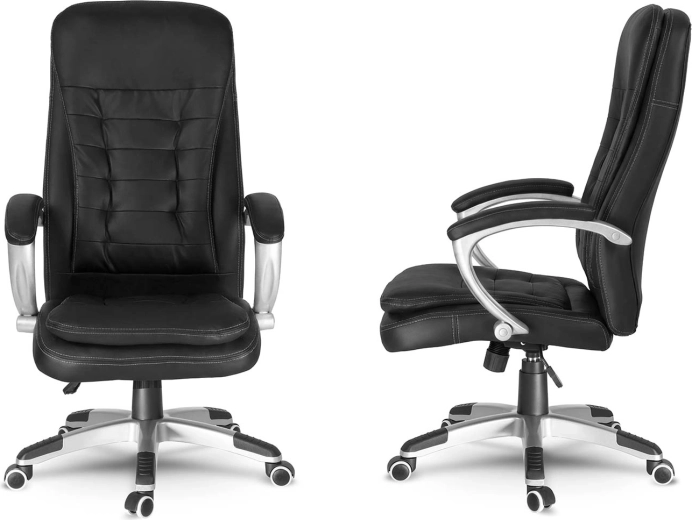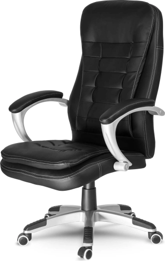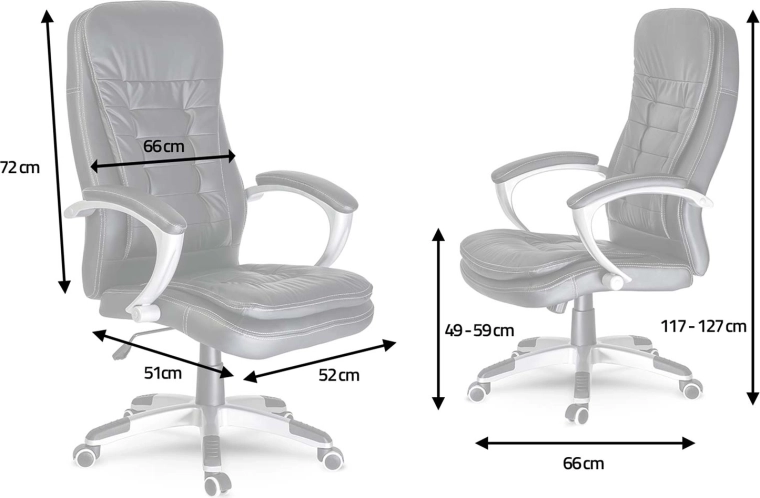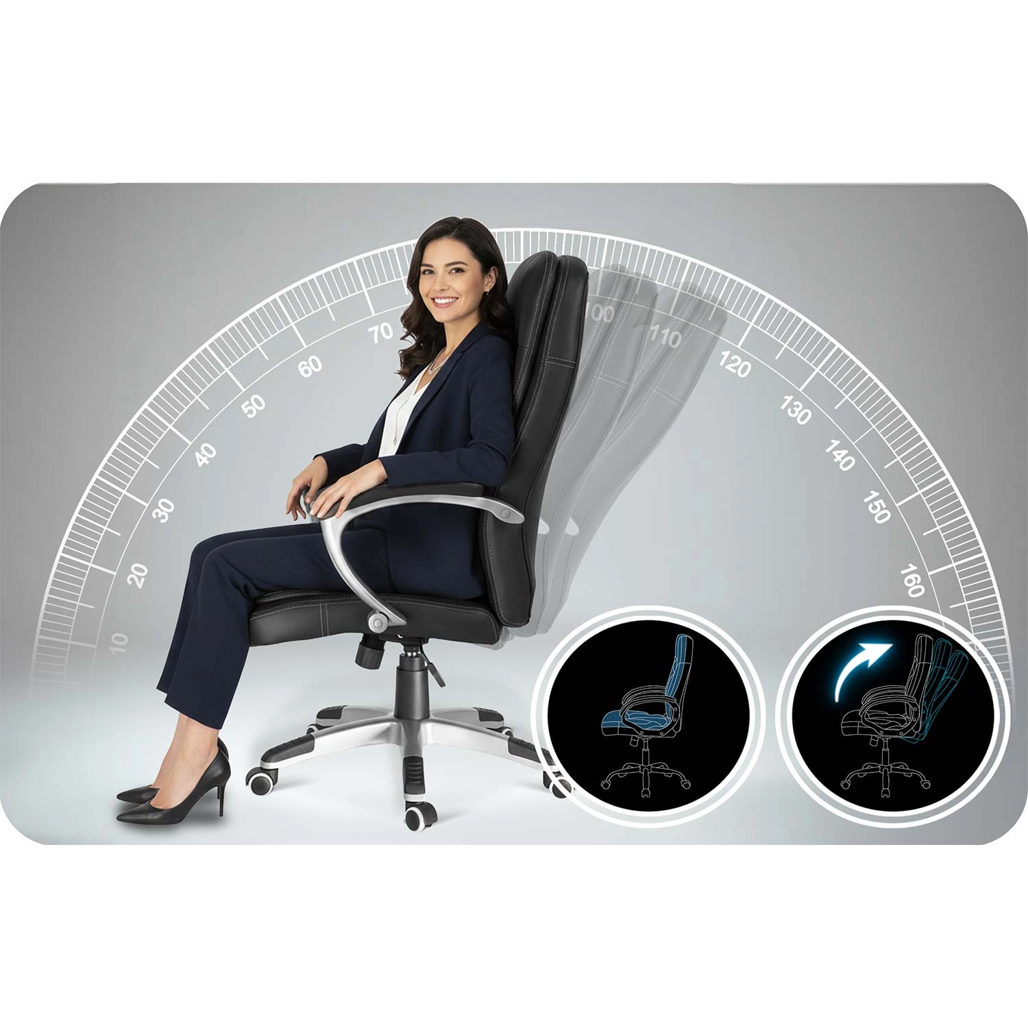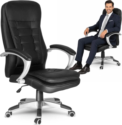 Robustní pětiramenná základna s chromovanými akcenty a tichá, povrchově upravená kolečka se otáčejí o 360°, takže se po kanceláři pohybujete plynule a bez poškrábání podlah. Funkce naklápění opěradla přináší rychlou úlevu páteři a umožňuje krátký relax přímo u pracovního stolu.