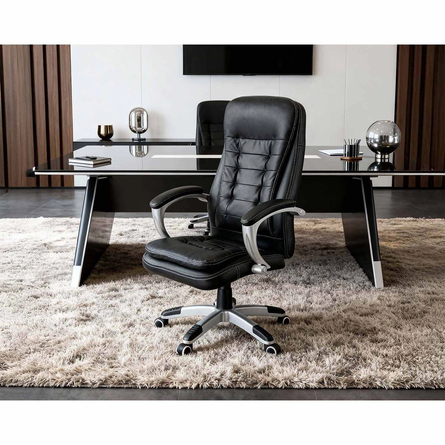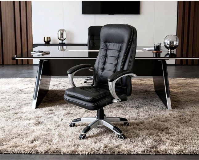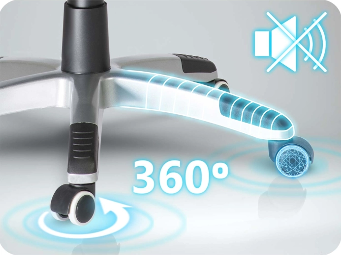 Chromovaná pětiramenná základna zajišťuje stabilitu, zatímco tichá, povrchově šetřná kolečka umožní hladký pohyb bez poškrábání podlah.