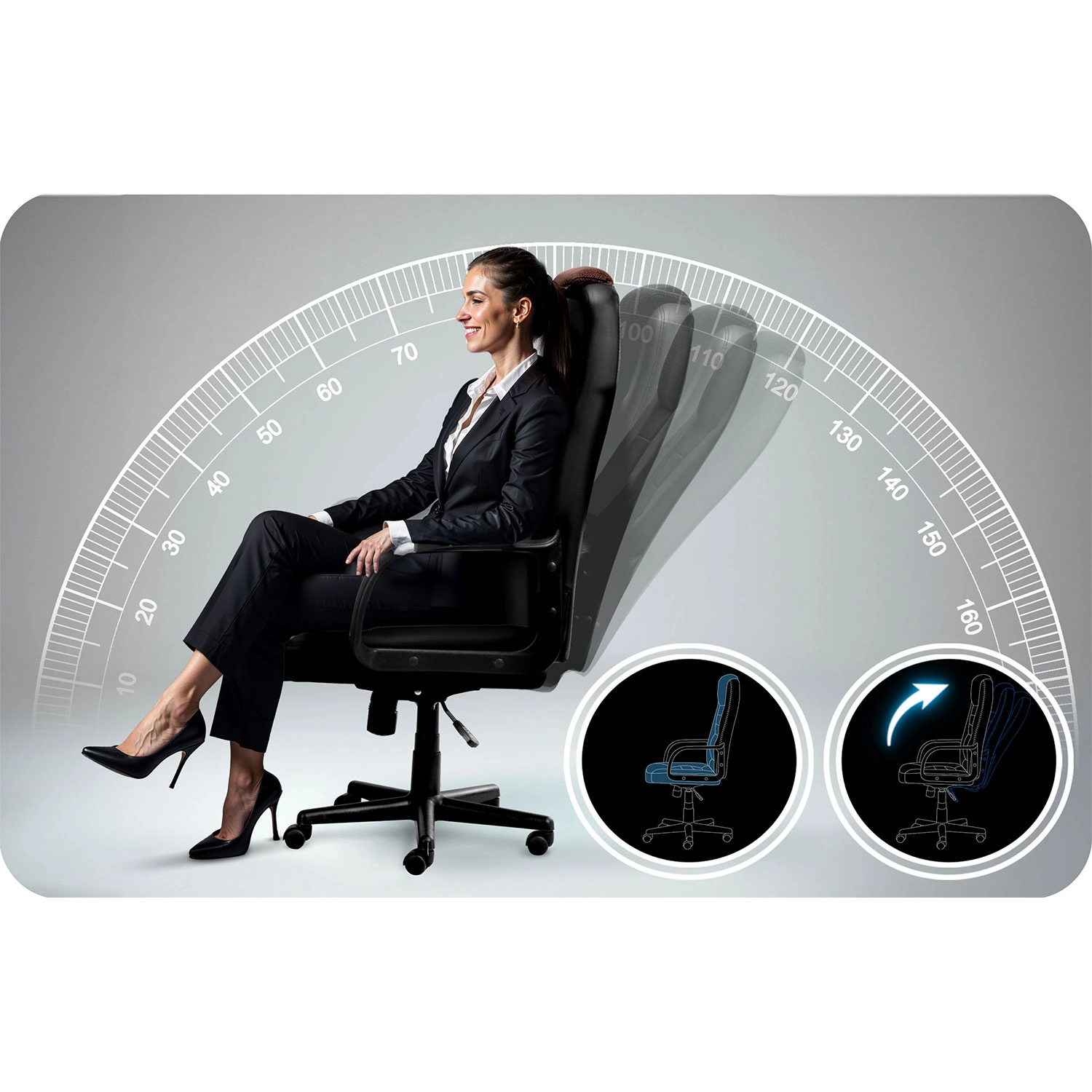 Díky plynulému nastavení výšky si snadno přizpůsobíte pozici k pracovnímu stolu. Odolná základna s kolečky 360° zajišťuje stabilitu, tichý pohyb a ochranu podlahy. Naklápění opěradla umožní během dne rychle ulevit zádům a nabrat novou energii.