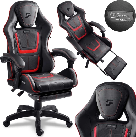 Ergonomická herní židle Specter od Sofotel spojuje gaming, práci i relax v jednom. Nabízí výsuvnou opěrku nohou, sklápění opěráku až do 140°, plynulé nastavení výšky a stabilní základnu s tichými kolečky. Prodyšné čalounění EmbrONE™, podpora krční a bederní oblasti a komfortní výplně zajistí pohodlí i při dlouhém sezení.