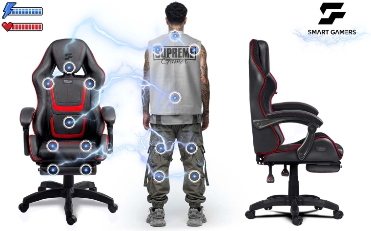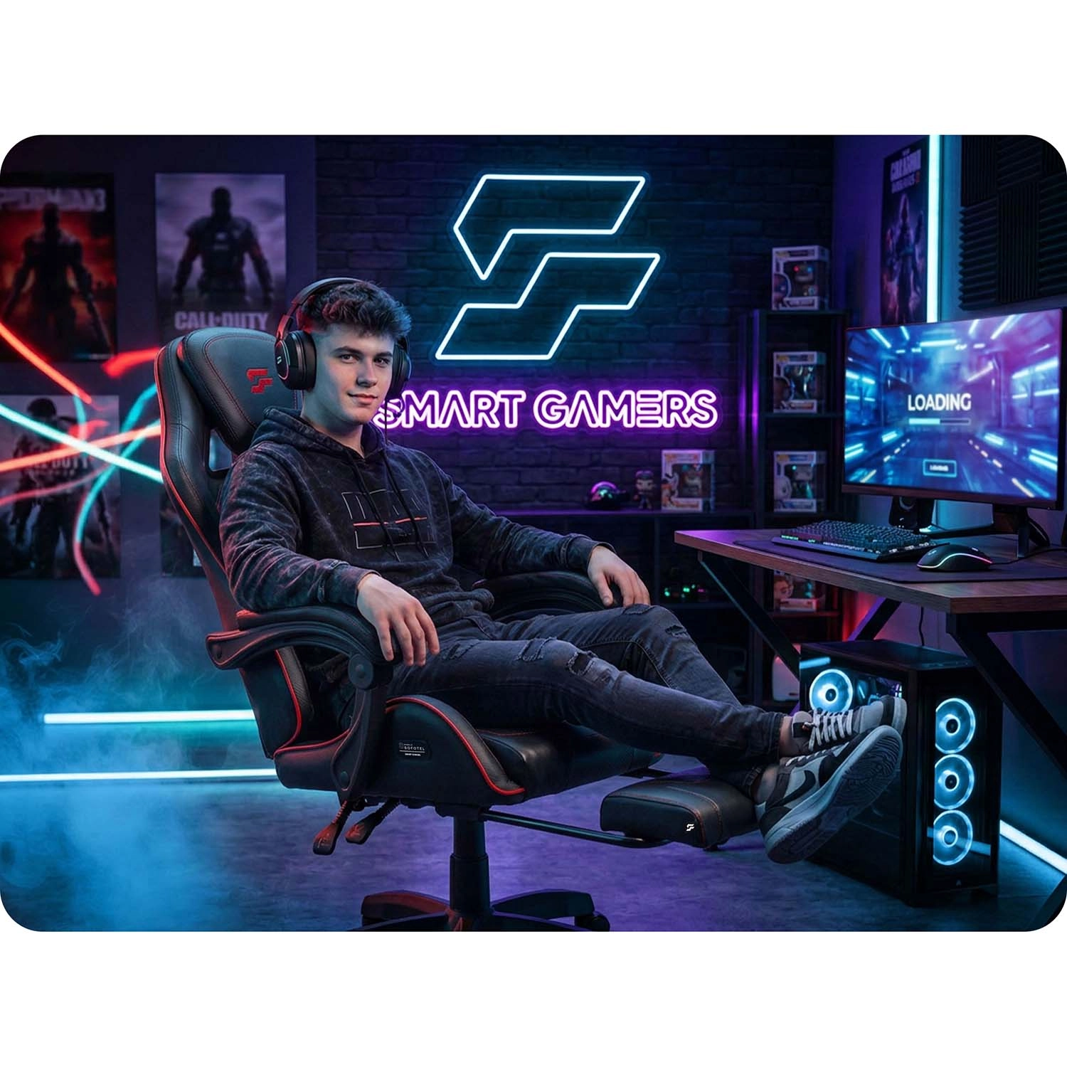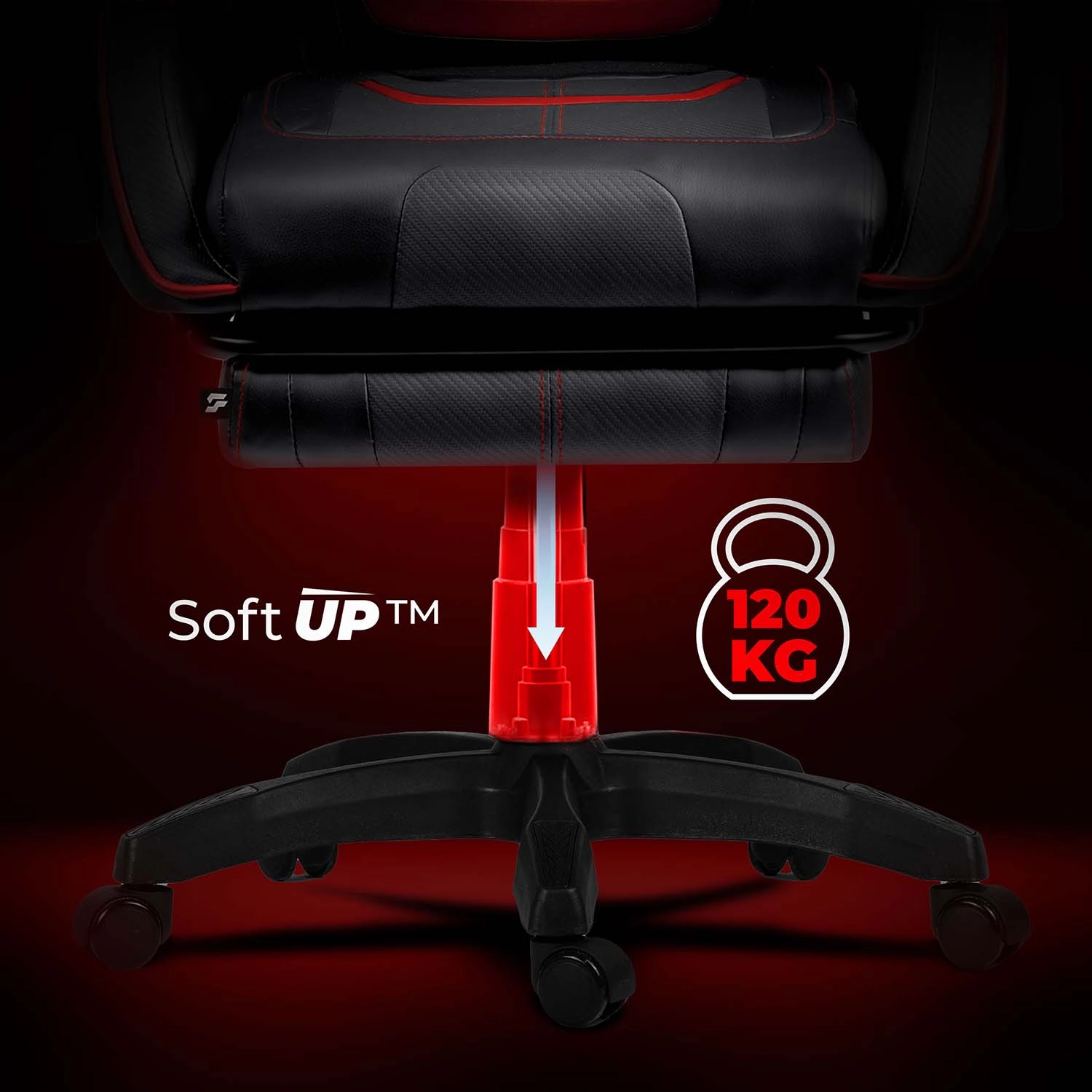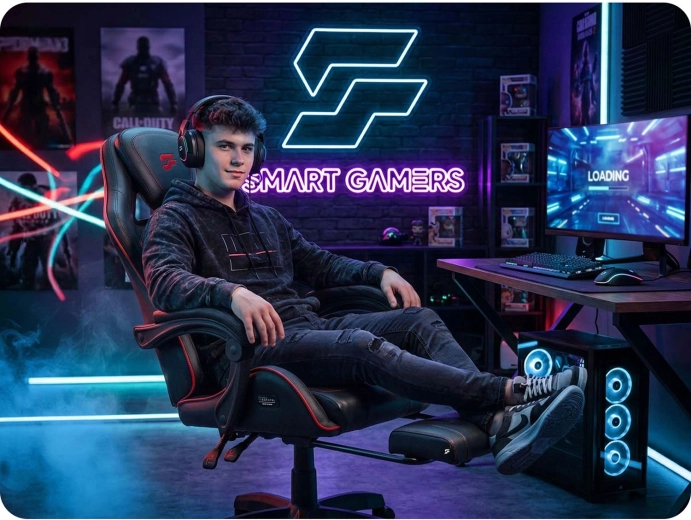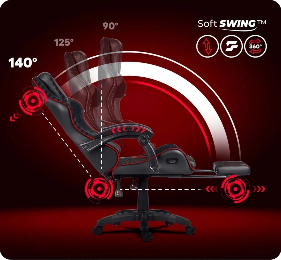 Po intenzivní hře nebo práci stačí vysunout podnožník a uvolnit nohy. Ideální pro krátké pauzy i delší regeneraci bez vstávání od stolu.