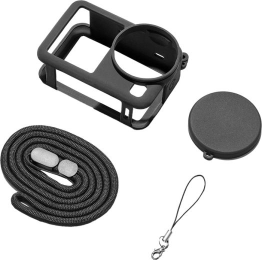 Křehké části si zaslouží extra péči – součástí balení je nezávislý kryt objektivu, který brání prachu, otiskům prstů a náhodnému poškození. Praktický popruh (51 cm) s kovovou karabinou umožní nosit kameru na krku, připnout ji k batohu či výbavě a mít ji vždy po ruce. Materiál je snadno omyvatelný, odolný vůči nečistotám a dlouhodobě si zachovává čistý vzhled.