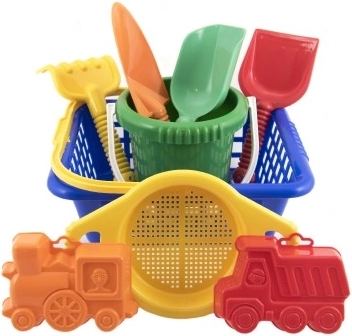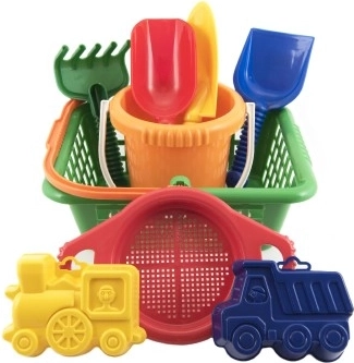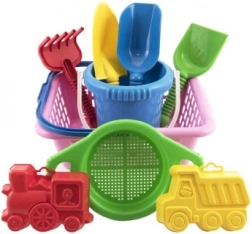 - Košík, kyblík, sítko, lopatka, rýč, hrabičky, 2 bábovky