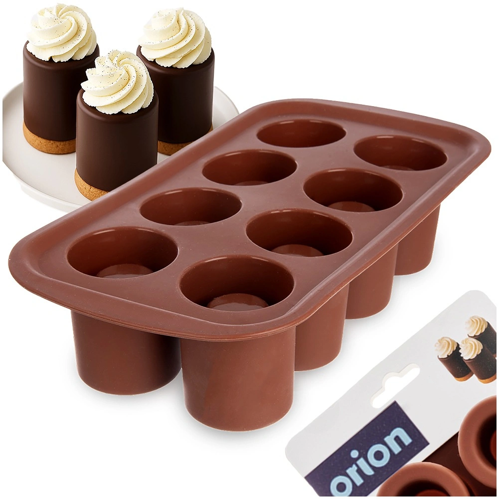 Tato praktická silikonová forma umožňuje vytvářet efektní dezerty s dutinou pro krémy, pěny, zmrzlinu či likéry. Díky 8 formičkám o průměru cca 4,5 cm a výšce 6 cm připravíte více porcí najednou – ideální na minidezerty, čokoládové kalíšky i slané jednohubky.