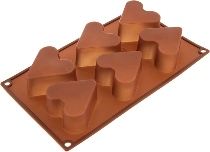 Tato kvalitní silikonová forma umožní pohodlně připravit až 6 porcí v romantickém tvaru srdce. Nepohlcuje pachy ani chutě, těsto se nepřichytává a k pečení není nutné vymazávání tukem ani vysypávání moukou. Ideální pro sušenky, mini dortíky, brownies, pralinky i zmrzlinové dezerty.