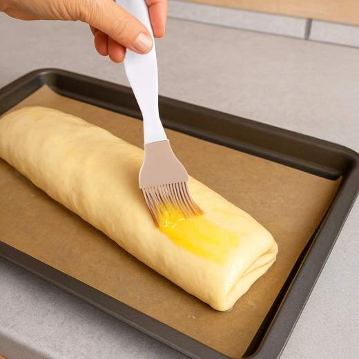 Jemné a pružné silikonové štětiny rovnoměrně roztírají olej, žloutek či omáčky po pečivu, mase i formách bez poškození povrchu.