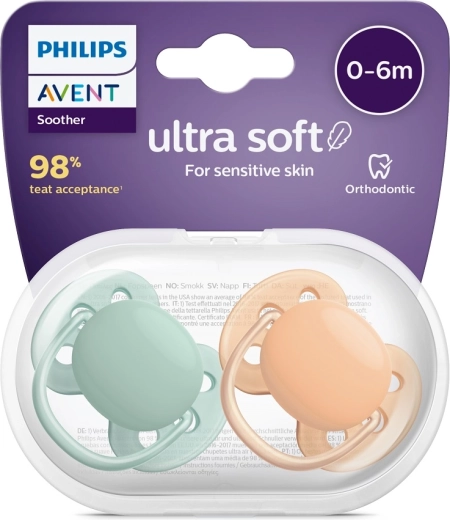 Šidítko Philips Avent Ultrasoft Premium je navrženo pro citlivou dětskou pokožku. Jeho jedinečný měkký a pružný kotouč se přizpůsobí konturám obličeje, takže minimalizuje tlak na tváře a pomáhá předcházet podráždění. Ortodontický, symetrický sosák z jemného, potravinářského 100% silikonu bez BPA podporuje správný vývoj patra, zubů a dásní a díky textuře působí miminku přirozeně.