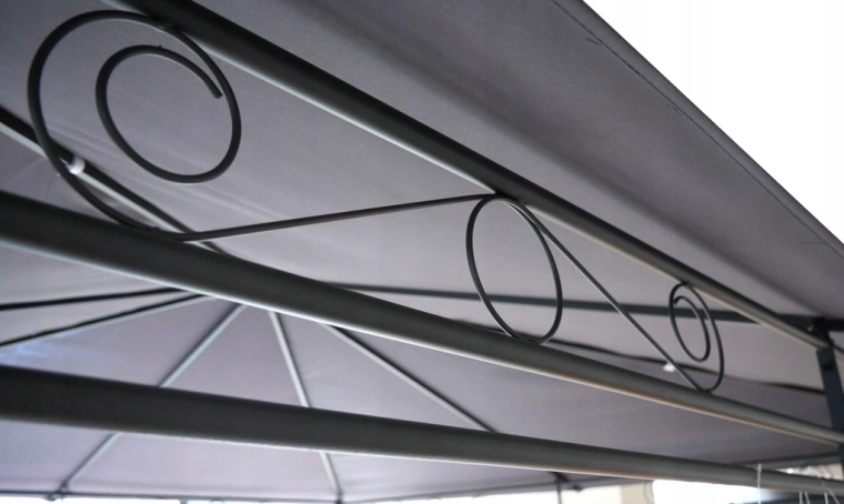 Šedý zahradní altán 3 × 3 m kombinuje moderní vzhled a praktickou funkčnost. Stabilní ocelové profily s práškovým lakem zajišťují dlouhou životnost a pevnost, textilní střecha z polyesteru (140 g/m²) pak poskytuje účinnou ochranu před sluncem a lehkým deštěm.