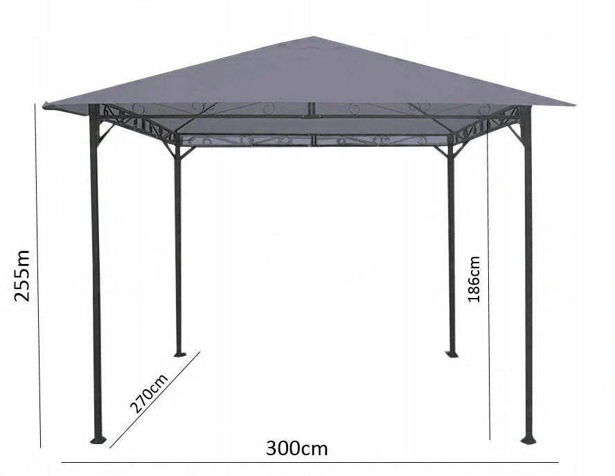 Elegantní zahradní altán o rozměrech 3 × 3 m se stane stylovým centrem vašeho venkovního posezení. Nabízí spolehlivé zastínění, odolnou ocelovou konstrukci s práškovým lakem a pevnou polyesterovou stříšku pro pohodlí při grilování, odpočinku i rodinných setkáních.