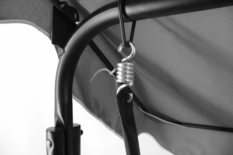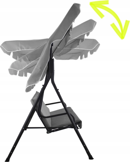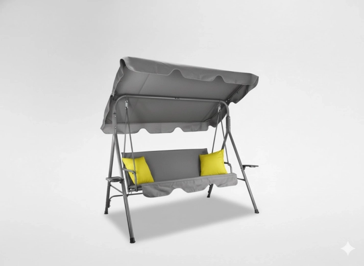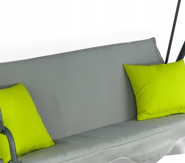Elegantní šedá houpačka s limetkovými akcenty je ideální pro 2–3 osoby. Díky polstrování z 5cm pěny a sedáku z odolné tkaniny Oxford 600×300D poskytuje dlouhodobé pohodlí, zatímco spružinové zavěšení zajišťuje plynulé houpání. Nastavitelná stříška s možností naklopení až o 45° vás ochrání před sluncem.