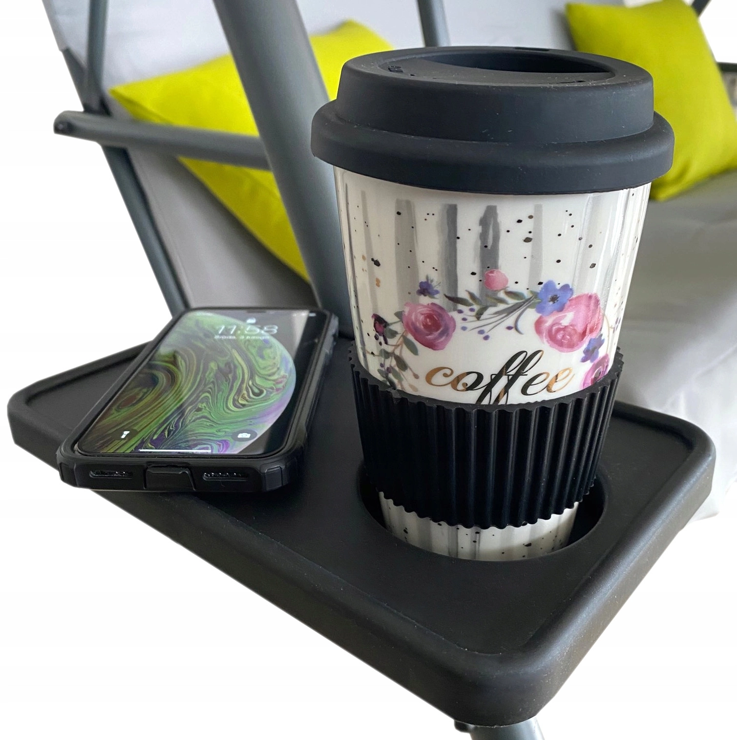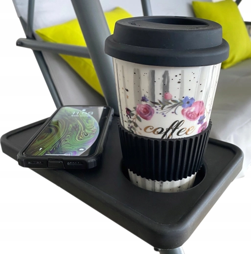 Integrované držáky u područek udrží kávu či limonádu bezpečně na dosah při každém houpání.