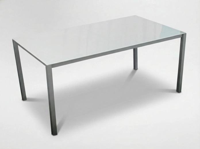 Deska z tvrzeného skla 5 mm je odolná proti poškrábání a snadno se čistí. Konstrukce z práškově lakované oceli (profil 40×20 mm a 40×40 mm, tl. stěny 0,8 mm) zaručuje dlouhou životnost a stabilitu i při každodenním používání venku.
